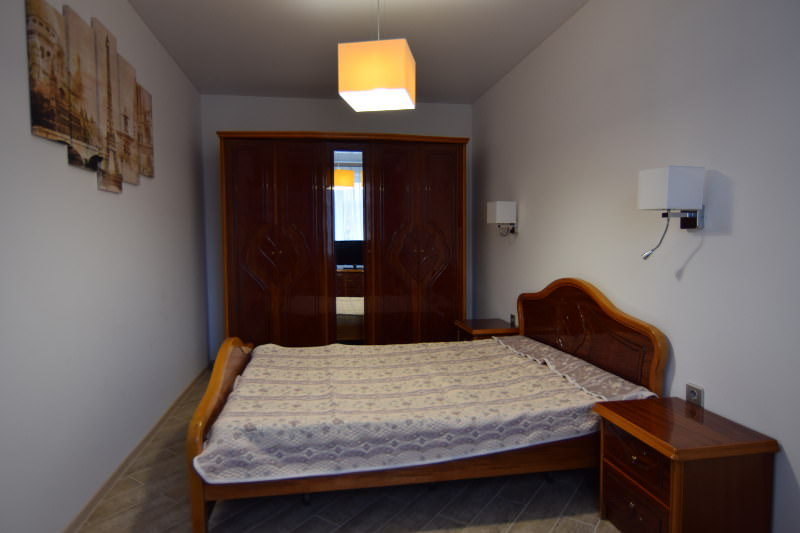 Площадь номера - 72 кв.м. 4 осн. места. 2 доп. места. Мебель: вешалка, зеркало, кровати односпальные /одна двуспальная кровать, прикроватные тумбочки, стол, стулья, шкаф. Мини-кухня. Оборудование: микроволновая печь, набор посуды, плита электрическая (газовая плита), сплит-система, телевизор, холодильник. Санузел: с ванной, фен. Сервис: смена полотенец, смена постельного белья, уборка номера.
