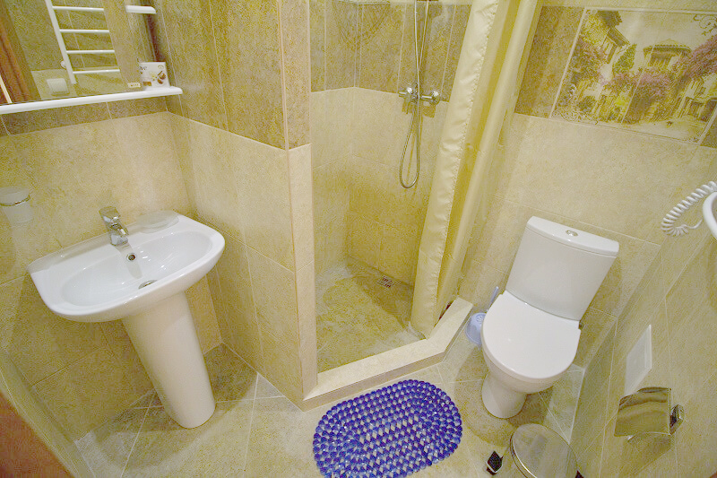 Площадь номера - 14 кв.м. 2 осн. места. Балкон. Мебель: вешалка, зеркало, кровати односпальные, прикроватные тумбочки, стол, стулья, шкаф-купе. Оборудование: сплит-система, телевизор, холодильник. Санузел: с душевой кабиной, туалетные принадлежности, фен. Сервис: Wi-Fi бесплатно, смена полотенец, смена постельного белья, уборка номера.