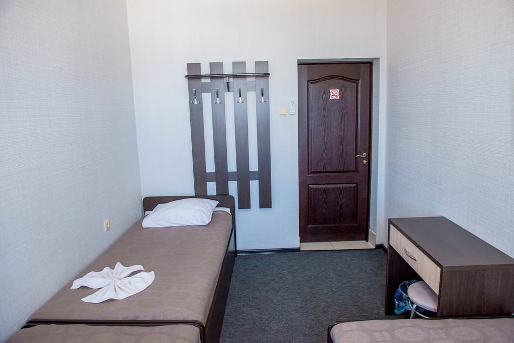 душ общий на три номера с общей прихожей, 4 односпальные кровати, кондиционер, телевизор, чайник, телефон, полотенце