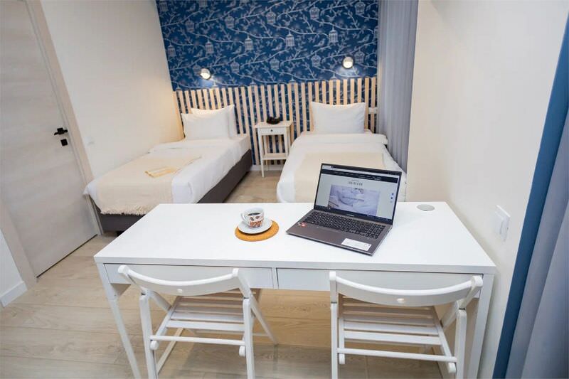 Площадь номера - 19 кв.м.; В номере: Кондиционер, Холодильник, Телевизор, Телефон, Кабельное/спутниковое/цифровое телевидение, Кухня, Фен, Душ/душевая кабинка, Раздельные кровати, Туалет в номере, Тумбочка, Шкаф, Чайник, Набор посуды, Микроволновая печь; Макс. кол-во гостей - 2