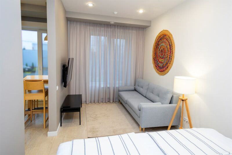 Площадь номера - 36 кв.м.; В номере: Кондиционер, Сейф, Телевизор, Телефон, Кабельное/спутниковое/цифровое телевидение, Тапочки, Кухня, Халат, Фен, Набор косметики (туалетные принадлежности), Набор для приготовления чая/кофе, Душ/душевая кабинка, Двуспальная кровать, Тумбочка, Шкаф, Кофейная станция, Набор посуды, Биде, Микроволновая печь, Диван; Макс. кол-во гостей - 3
