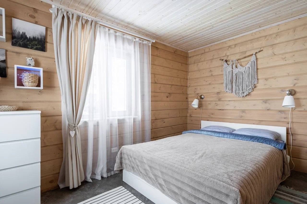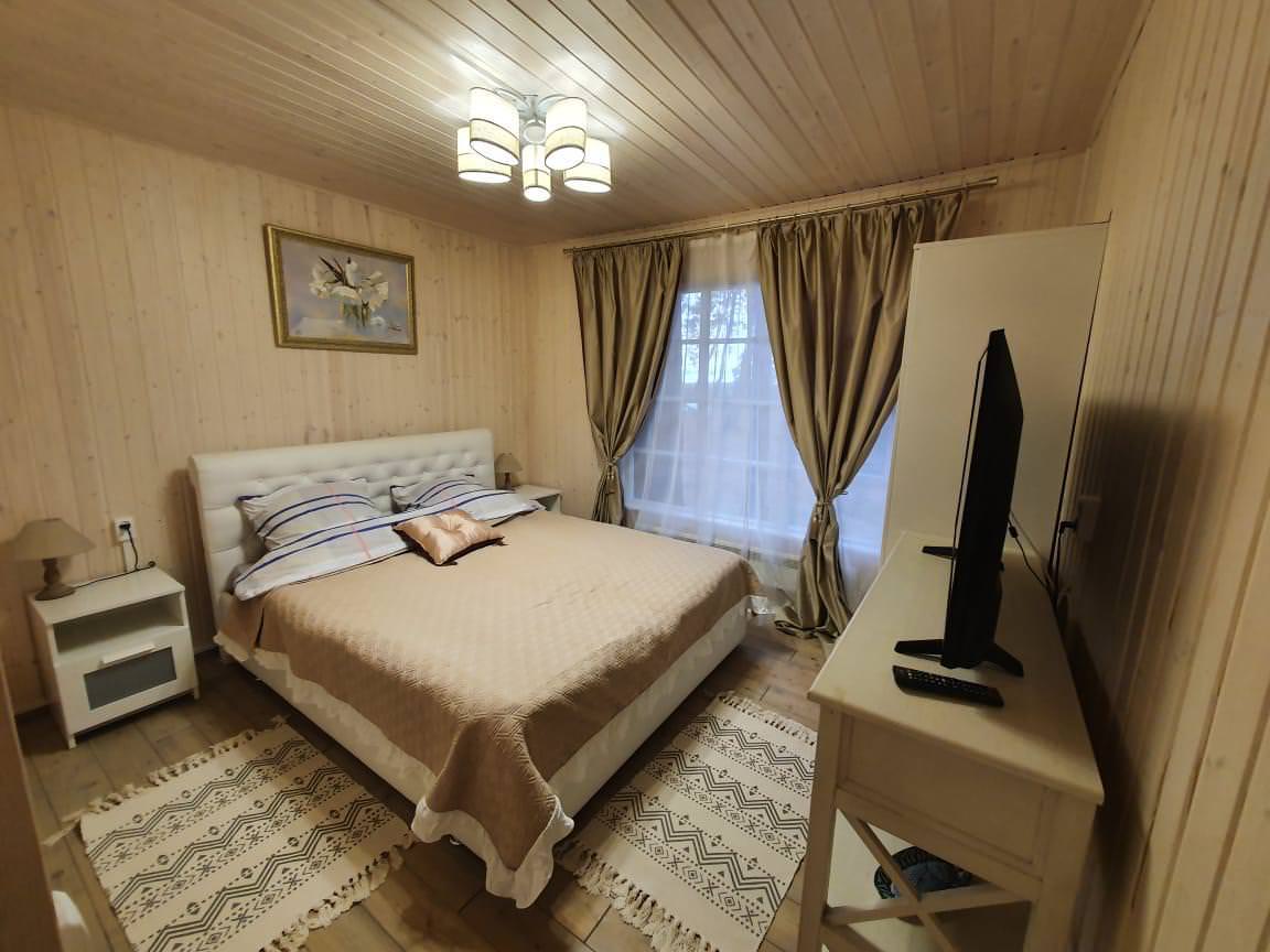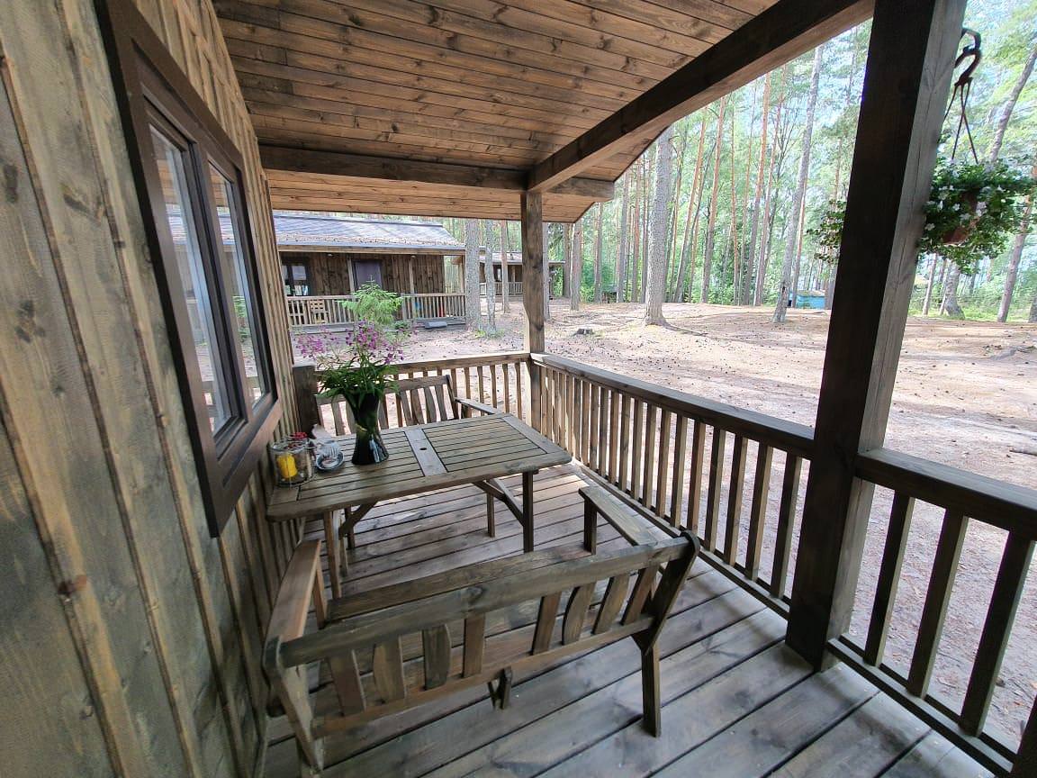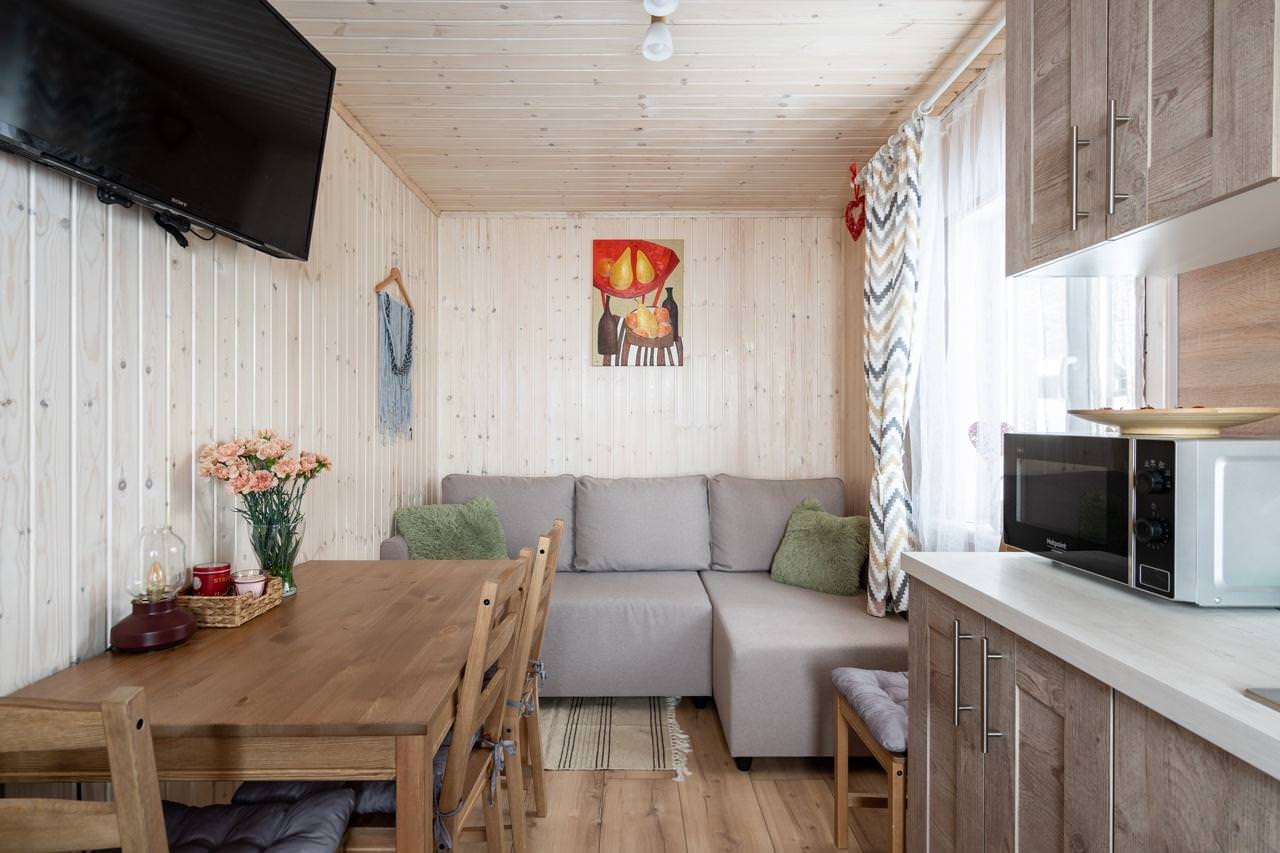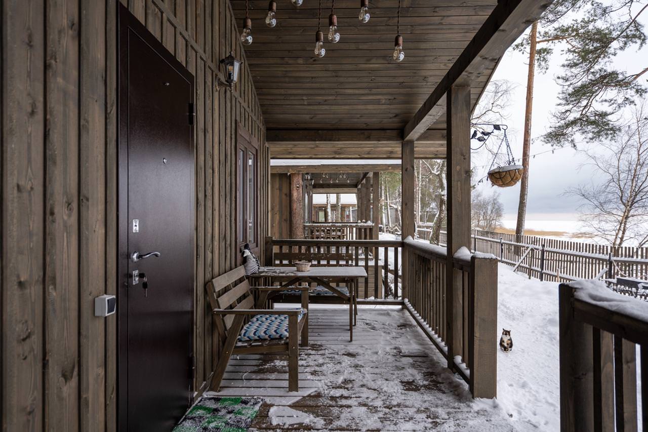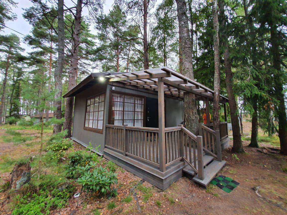 Уютный деревянный дом готов вместить гостей до 5 человек включительно. В доме расположены 2 спальни с односпальными кроватями, по запросу гостей возможно двуспальное размещение, встроенная кухня, ванная комната с горячей водой и большой террасой. Дом был построен в марте 2020 года, в нем предусмотрено теплые полы и электро-обогреватели. Для гостей данного дома также доступна беседка под открытым небом рядом с домом. Постельное белье включено в стоимость проживания. На берегу гости могут бесплатно воспользоваться зоной мангала и барбекю.
