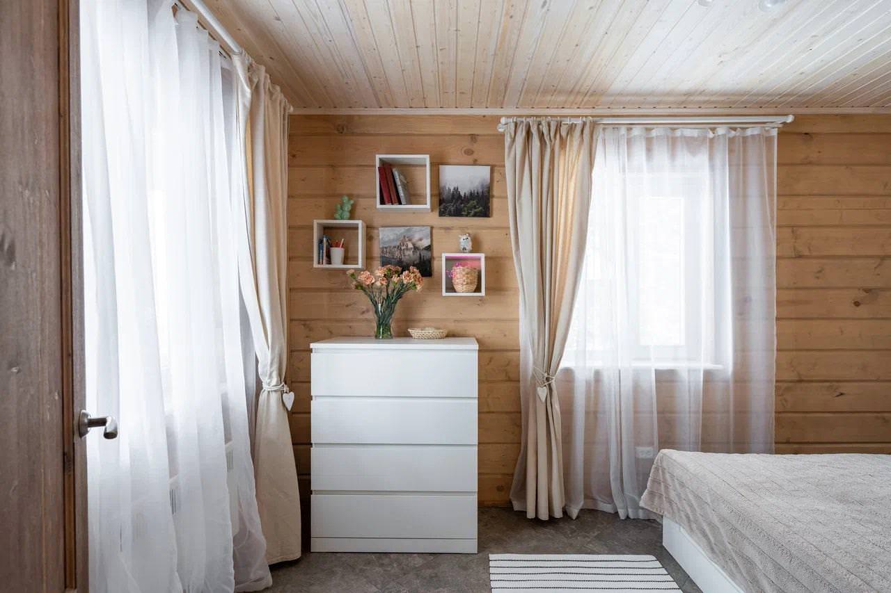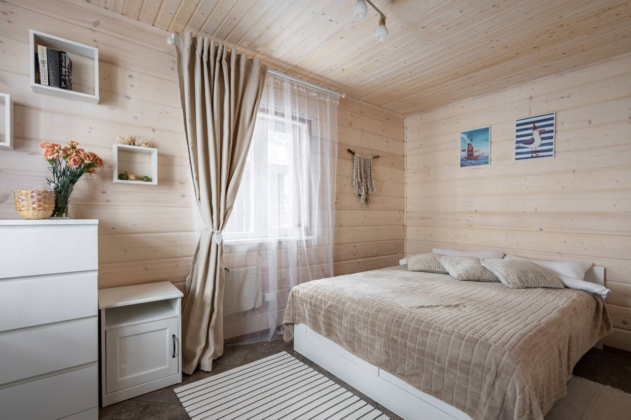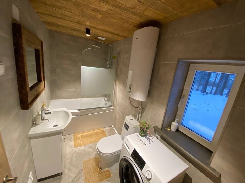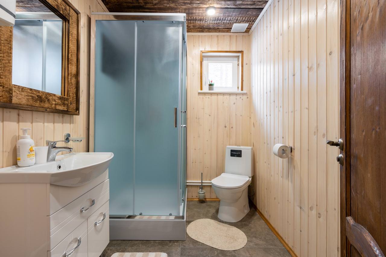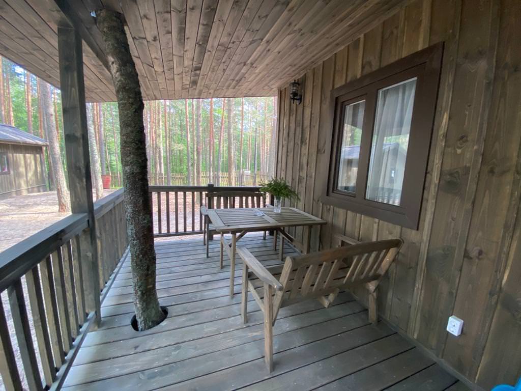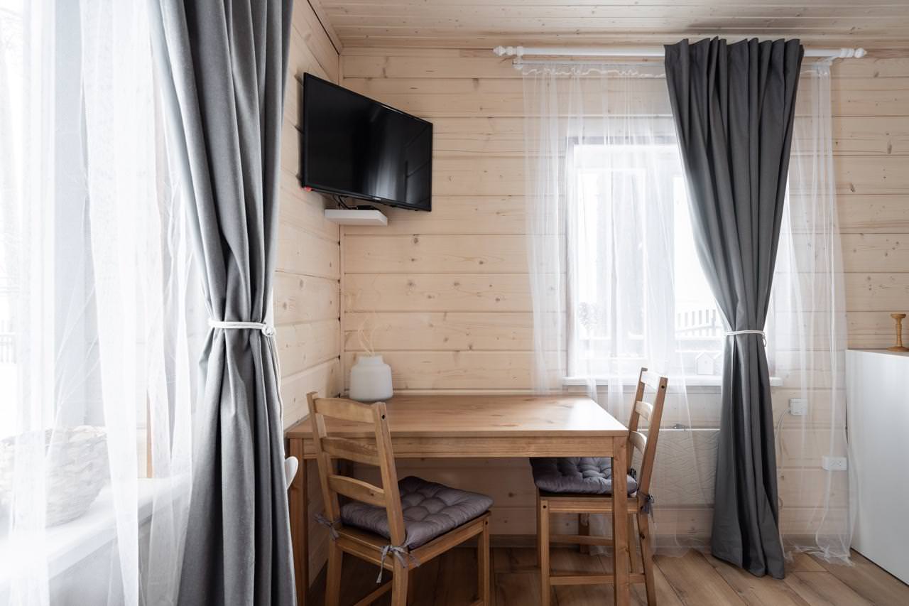 Уютный деревянный дом готов вместить гостей до 5 человек включительно. В доме расположены 2 спальни с односпальными кроватями, по запросу гостей возможно двуспальное размещение, встроенная кухня, ванная комната с горячей водой и большой террасой. Дом был построен в марте 2020 года, в нем предусмотрено теплые полы и электро-обогреватели. Для гостей данного дома также доступна беседка под открытым небом рядом с домом. Постельное белье включено в стоимость проживания. На берегу гости могут бесплатно воспользоваться зоной мангала и барбекю.