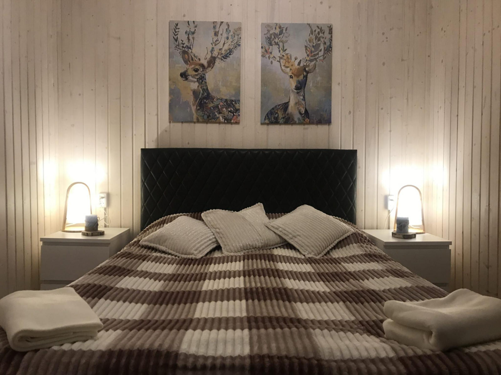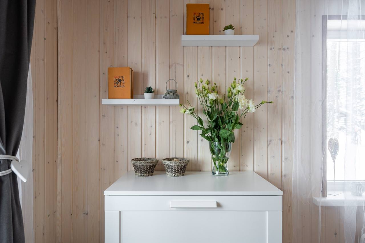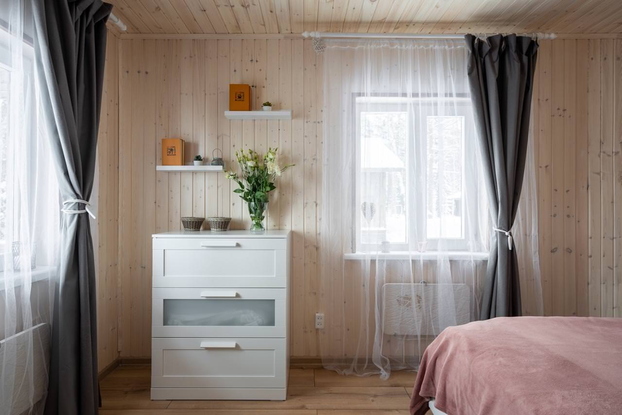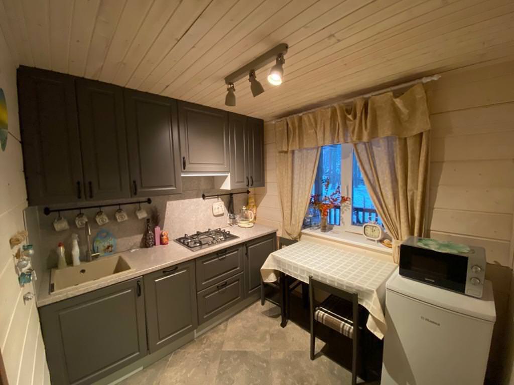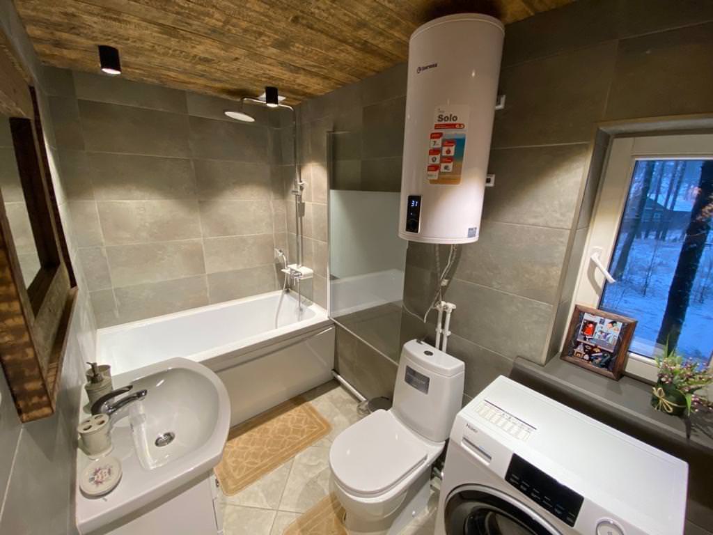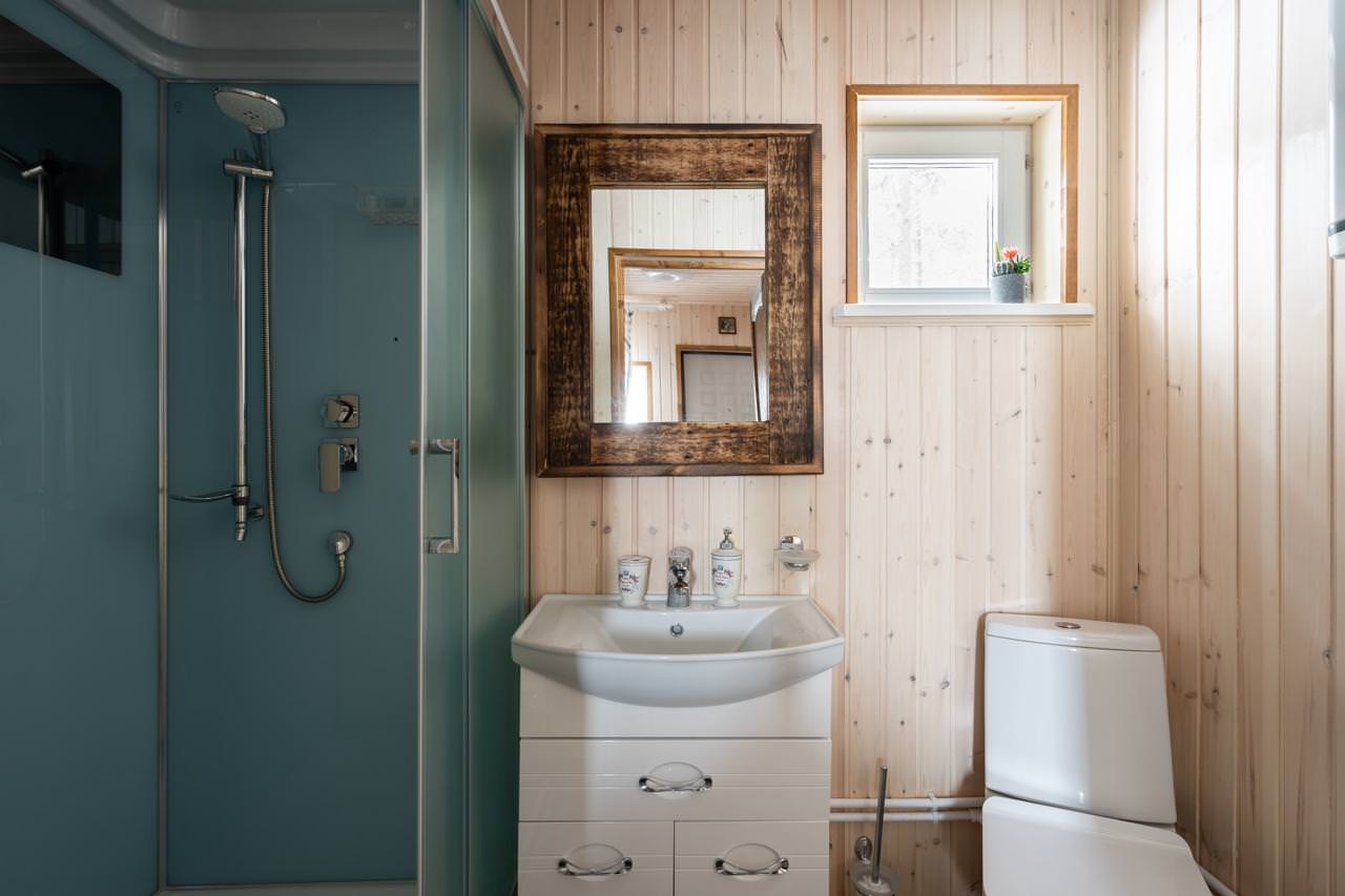 Уютный деревянный дом готов вместить гостей до 5 человек включительно. В доме расположены 2 спальни с односпальными кроватями, по запросу гостей возможно двуспальное размещение, встроенная кухня, ванная комната с горячей водой и большой террасой. Дом был построен в марте 2020 года, в нем предусмотрено теплые полы и электро-обогреватели. Для гостей данного дома также доступна беседка под открытым небом рядом с домом. Постельное белье включено в стоимость проживания. На берегу гости могут бесплатно воспользоваться зоной мангала и барбекю.