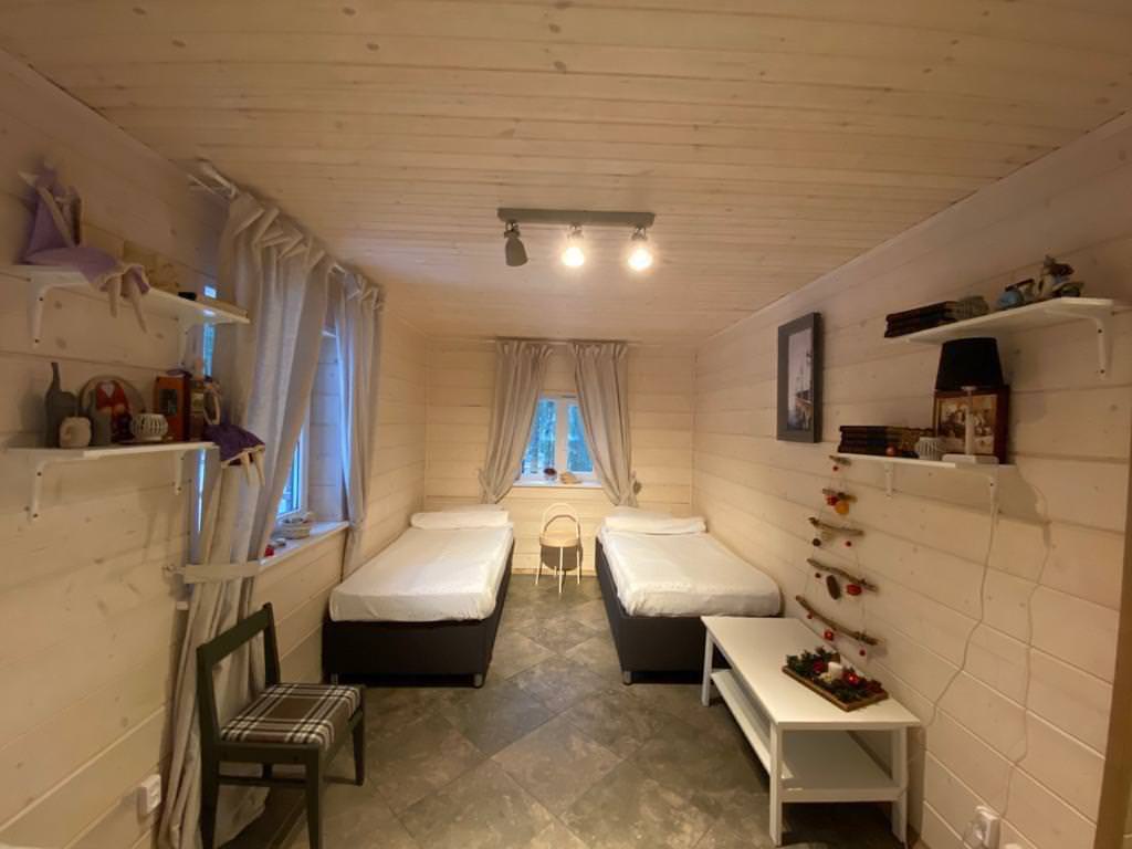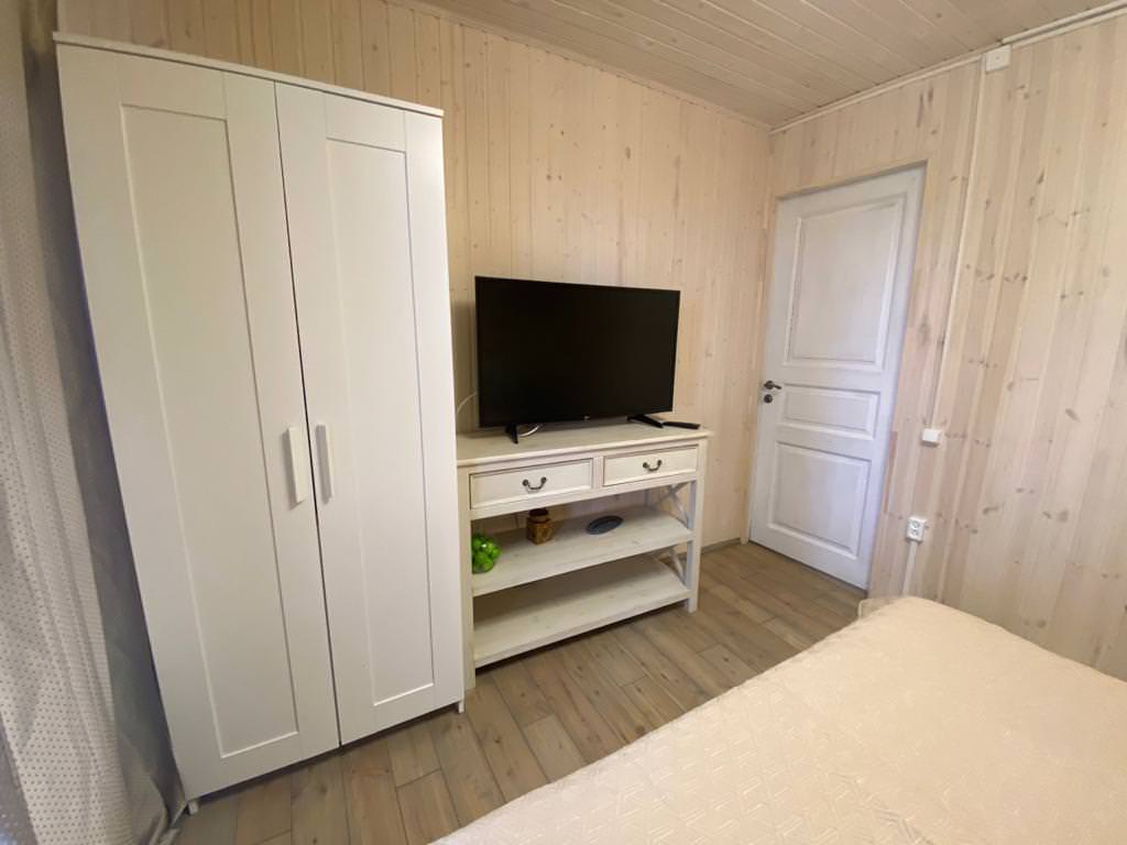 Гостевой четырёх-местный дом с 2-мя спальнями, кухней-гостиной, собственной ванной комнатой и террасой вместимостью до 4 человек, прекрасно подойдет для отдыха с семьей или в компании друзей. Дом укомплектован новым холодильником, микроволновой печью, спальными принадлежностями, включая постельное белье, электрическим чайником, посудой, местом для хранения (шкаф, комод), электрообогревателем и газовой варочной поверхностью на 2 комфорки.