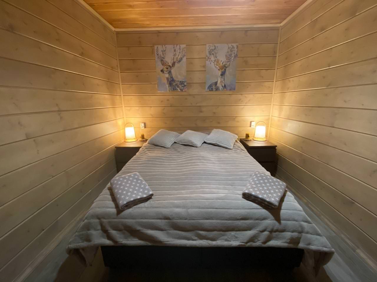 Двухместный коттедж с одной спальней, кухней, собственным санузлом с ванной и уличной террасой вместимостью до 2 человек, прекрасно подойдет для семейной пары. Дом укомплектован двуспальной кроватью, холодильником, кухонным гарнитуром, спальными принадлежностями, электрическим чайником, посудой. Дом отапливается с помощью электрообогревателей и теплого пола в ванной комнате. По запросу гостей можно разместить детскую кроватку. Возле террасы домика находится стационарный мангал.