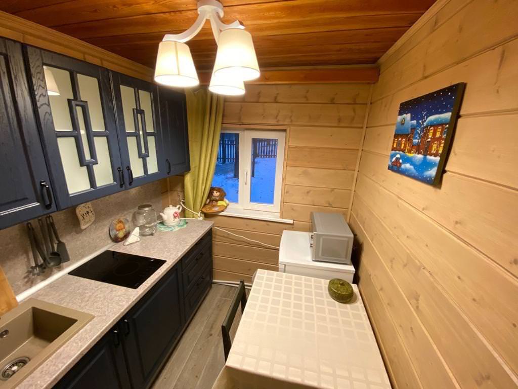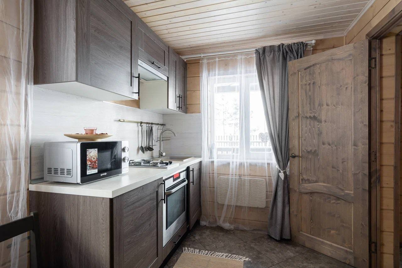 К услугам гостей уютная спальня, совмещенная с кухней гостиная с двуспальным диваном, современная кухня, санузел с душевой кабиной, авторским дизайном потолка и зеркала. Отопление дома представлено электрообогревателями и теплым полом. Рядом с коттеджем находится зона барбекю (мангал), с уличной террасы открывается прекрасный вид на Финский залив.