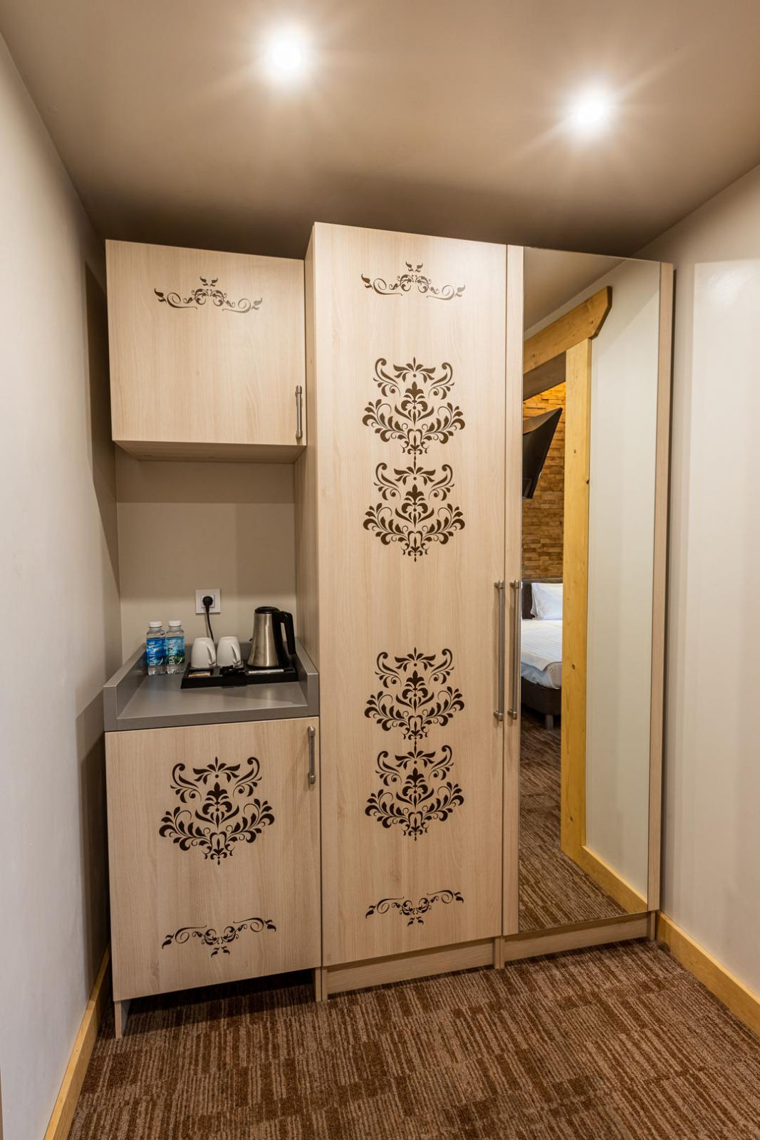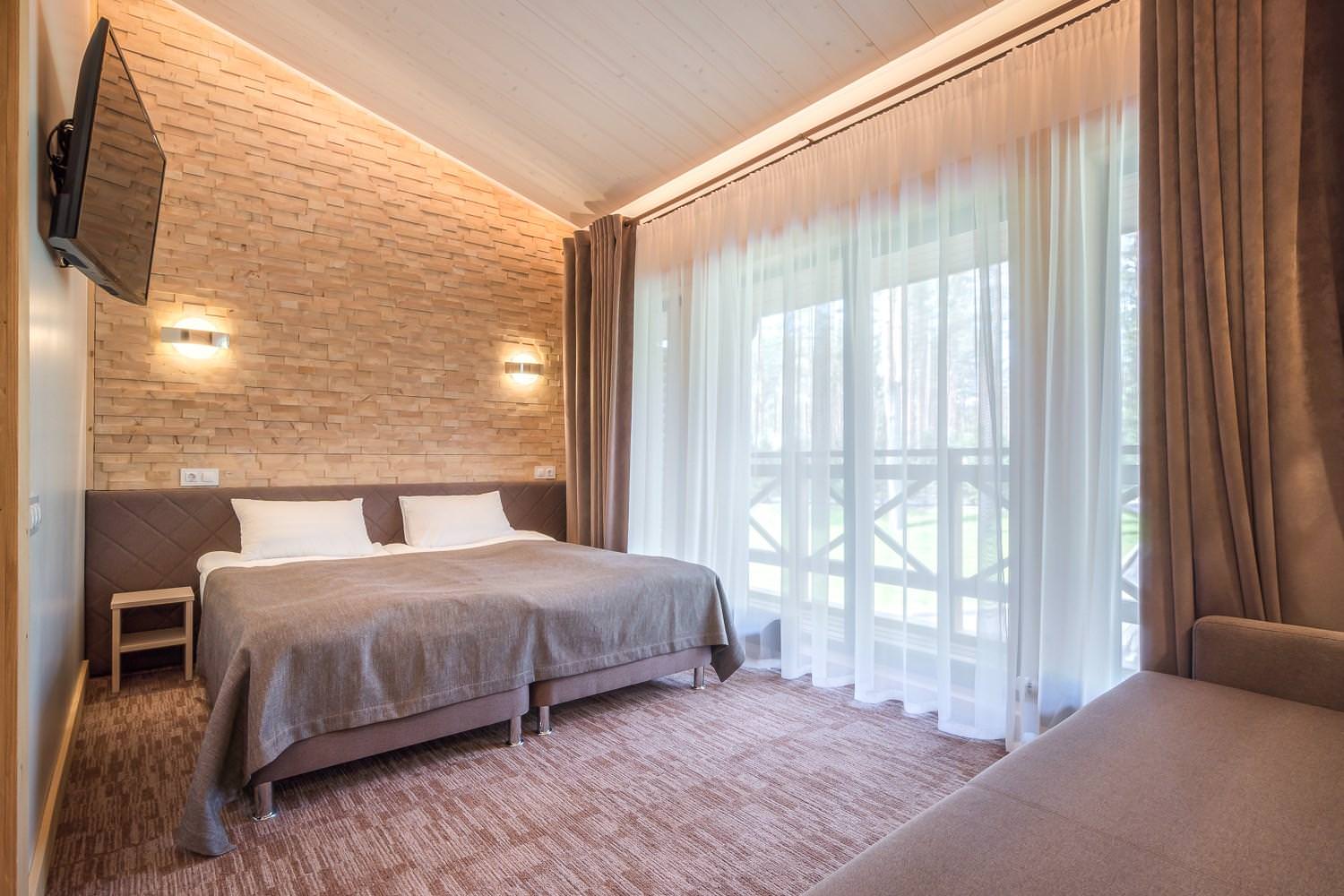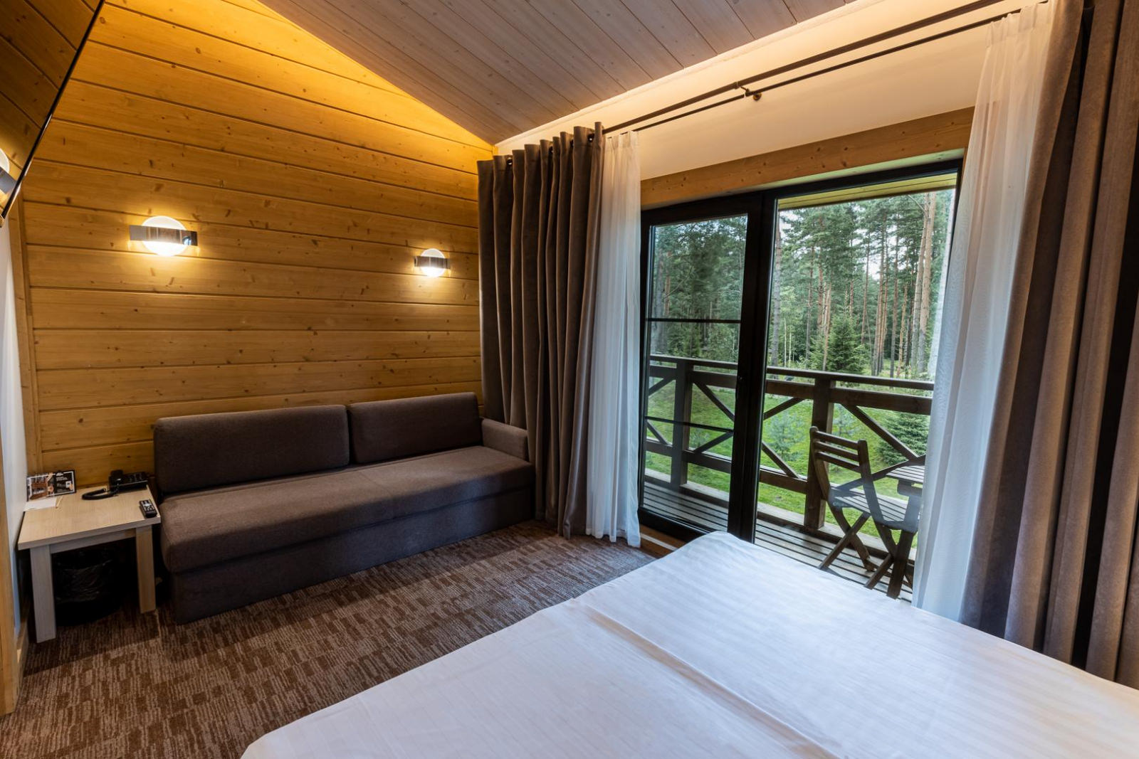 Верный выбор для небольших семей или компаний, желающих комфортно и активно отдохнуть на свежем воздухе, но недалеко от города. В номерах с простым, но элегантным интерьером сочетаются традиционный альпийский дизайн и домашний уют. Конечно же, в отеле есть помещение для хранения лыж, которым может воспользоваться каждый постоялец абсолютно бесплатно. Переступив порог отеля, вы сразу забудете обо всех проблемах. Спальня с одной двуспальной кроватью или двумя односпальными (по желанию). Диван (может быть дополнительным полноценным спальным местом для 3 гостя). Телевизор (интерактивное ТВ), фен, мини-холодильник, чайная станция (электрический чайник, чайный набор). Сейф для хранения ценных вещей, денег, документов. Шкаф для хранения одежды, зеркало, тумбы журнальный стол. Освещённая терраса: стол, кресла. Мини-бар.