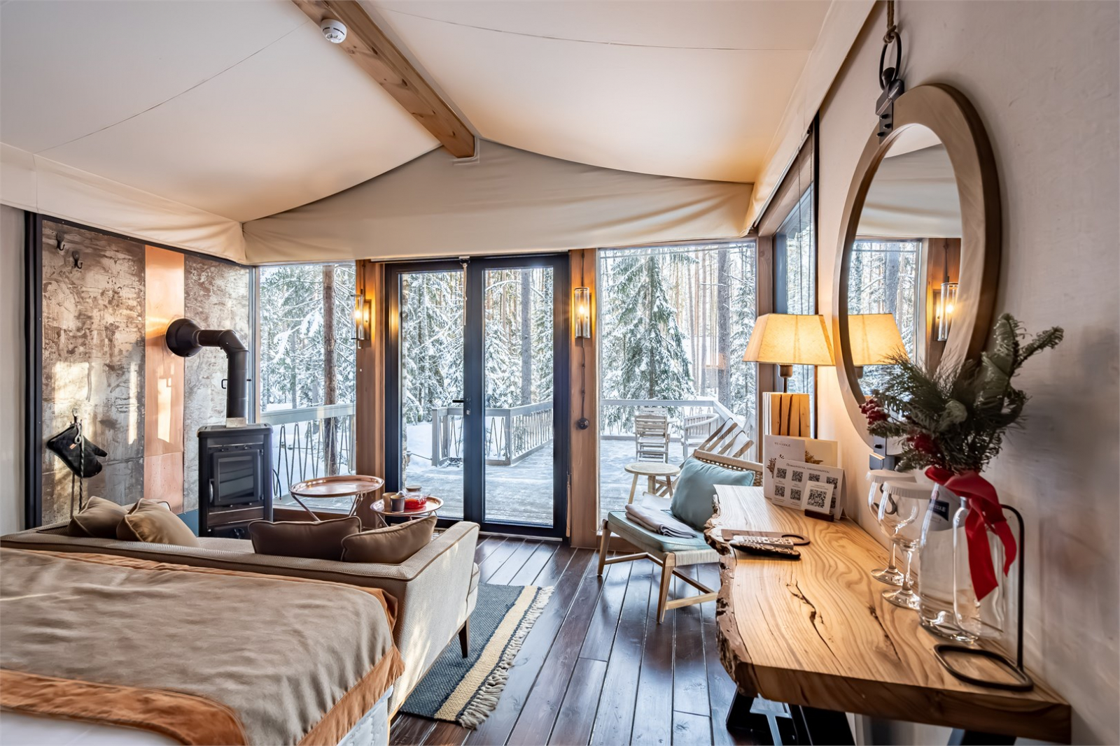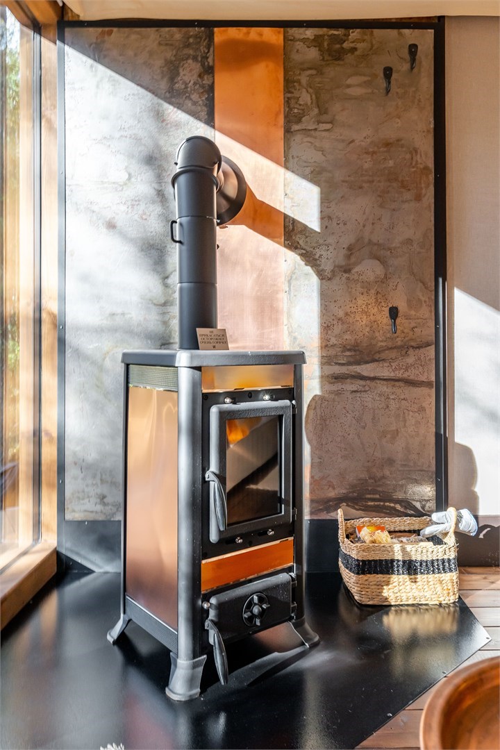 Деревянный лодж с печкой в хвойном лесу. Большая двуспальная кровать и комфортная ванная комната, дополнительное детское спальное место с зоной для хранения вещей. Просторная терраса с уличной мебелью для завтраков под теплыми лучами солнца и отдыха под открытым небом, а также собственная зона BBQ с навесом под кронами деревьев для приготовления блюд на углях круглый год или для теплых посиделок у костра. Интерьер выполнен в стиле сафари: экологичные материалы, природные фактуры, натуральные цвета и яркие акценты. Размещение: 1-2 гостя + 1 ребенок до 14 лет с отдельным спальным местом. В стоимость проживания включено: завтрак, постельные принадлежности премиум класса, экокосметика, вода, кофе и набор чая, проектор для просмотра фильмов на большом экране — лесной кинотеатр у вас в лодже, дрова для растопки печки. За дополнительную плату можно заказать room-service, гриль-сеты (мясо/рыба/птица) или инструменты для приготовления блюд в собственной зоне BBQ, мешок дров и угли, а также кино-сет для просмотра фильмов. Время заезда — с 15:00 Время выезда — до 12:00