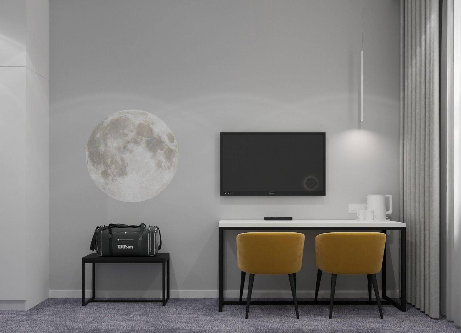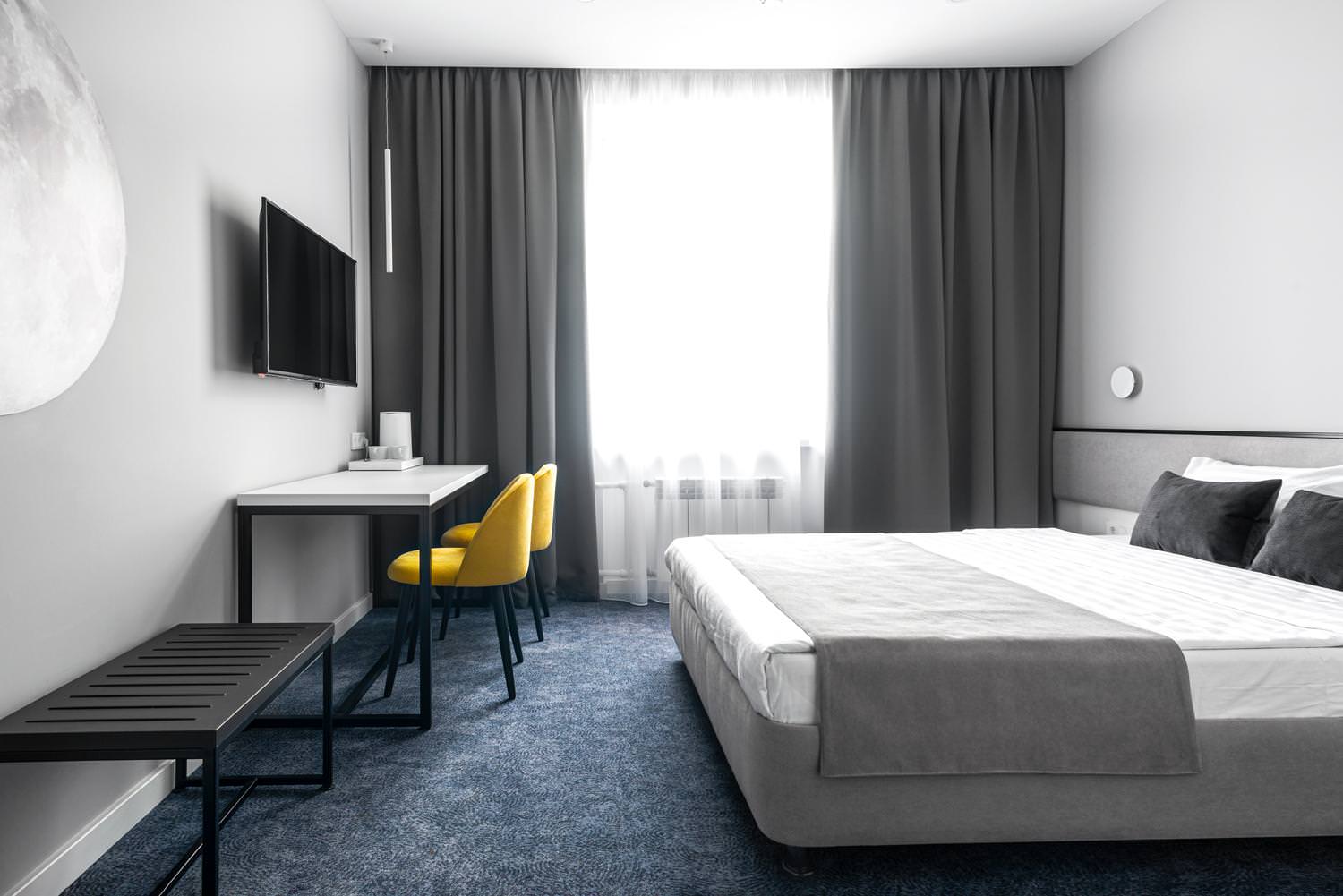 Только стиль и комфорт ничего лишнего. Двуспальная кровать, рабочий стол, шкаф-гардеробная, зеркало во весь рост. Каждый номер оснащён холодильником, электрочайник, посуда, чай,кофе.