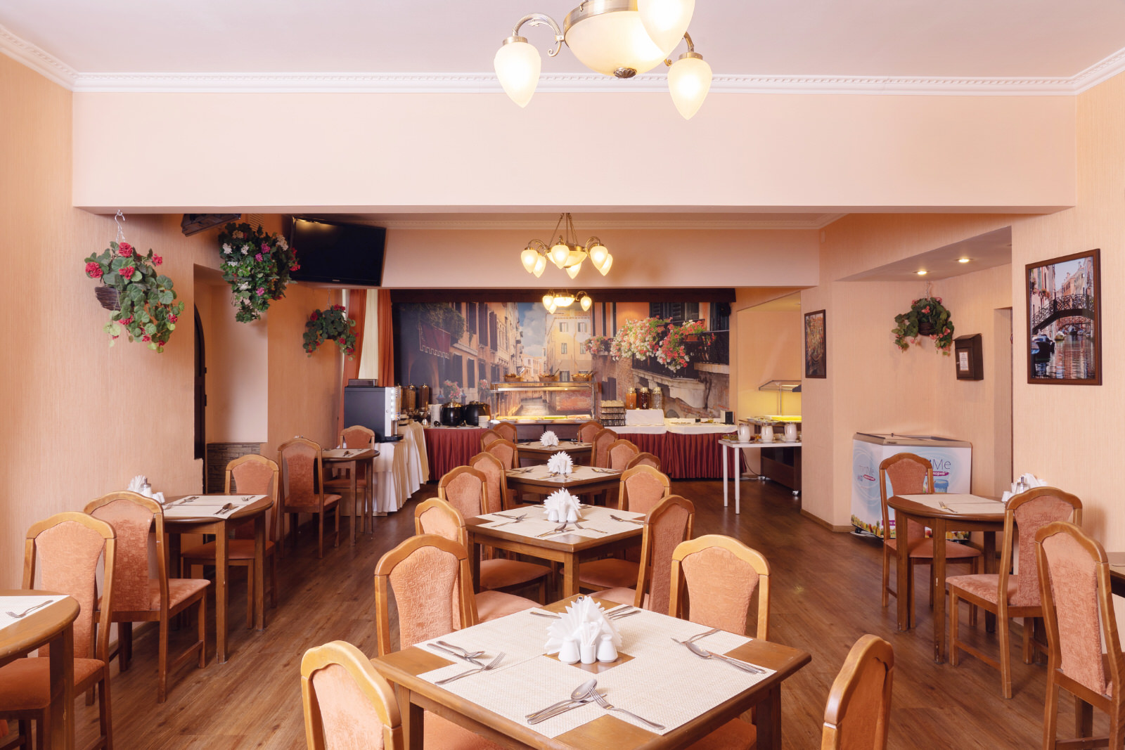 Услуга Питание предоставляется в ресторане Европа (расположен по адресу ул. Гостиничная, 4 корп. 9, в здании отеля Максима Заря).