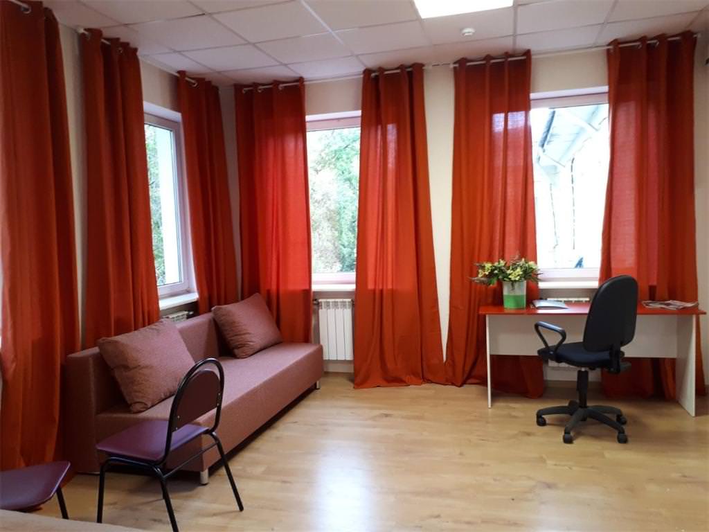 Площадь номера - 15 кв.м. 6 осн. мест. Мебель: диван, кровать двуспальная, прикроватные тумбочки, стол, стулья, шкаф. Оборудование: кондиционер, телевизор. Санузел и душевые на этаже. Сервис: Wi-Fi бесплатно, смена полотенец, смена постельного белья, уборка номера.
