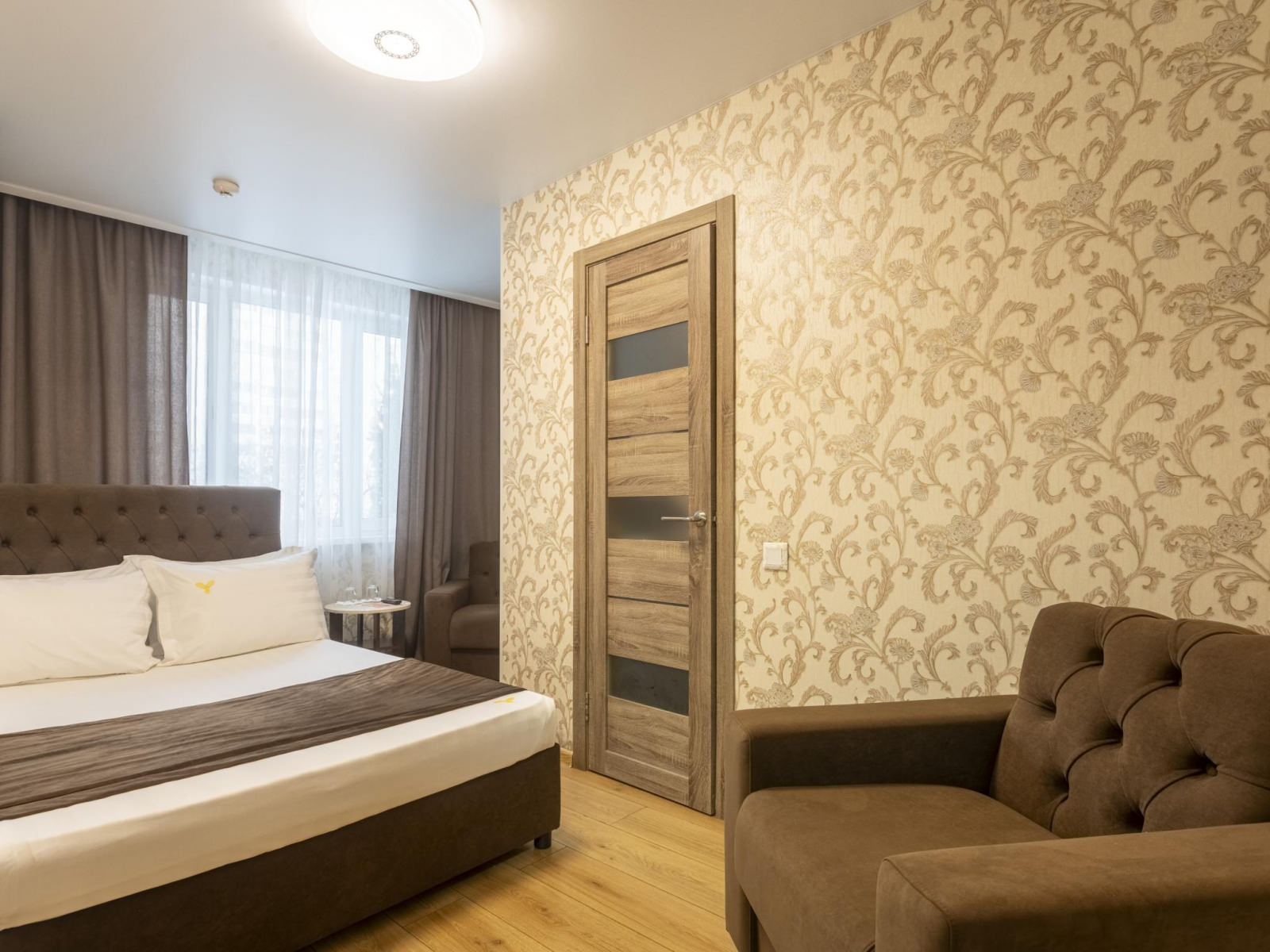 Двухместный номер комфорт общей площадью 15 кв.м. В номере большая двухспальная удобная кровать с ортопедическим матрасом с прикроватными тумбочками, шкаф купе с вешалками, холодильник, ТВ, столик с креслами, кондиционер. В ванной комнате есть душевая кабина, санузел, раковина, фен, комплект полотенец (по 3 шт. на персону) и корзинка с бесплатными гигиеническими средствами (шампунь, гель, мыло).