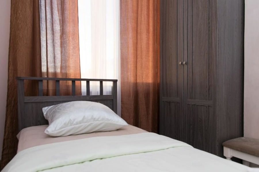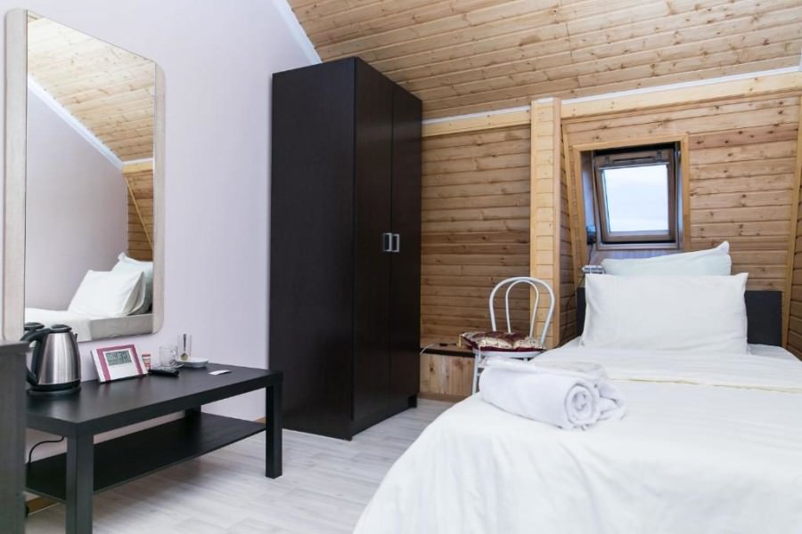 1 осн. место. Мебель: вешалка, зеркало, кровать односпальная, прикроватная тумбочка, стол, стул, шкаф. Оборудование. Санузел: с душем, тапочки, туалетные принадлежности. Сервис: Wi-Fi бесплатно, room-сервис, смена полотенец, смена постельного белья, уборка номера.