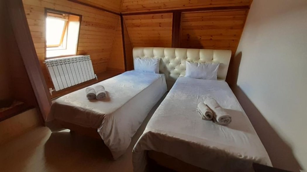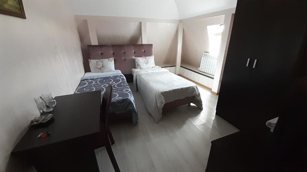 2 осн. места. Мебель: вешалка, зеркало, кровати односпальные /одна двуспальная кровать, прикроватные тумбочки, стол, стулья, шкаф. Оборудование. Санузел: с душем, тапочки, туалетные принадлежности. Сервис: Wi-Fi бесплатно, room-сервис, смена полотенец, смена постельного белья, уборка номера.