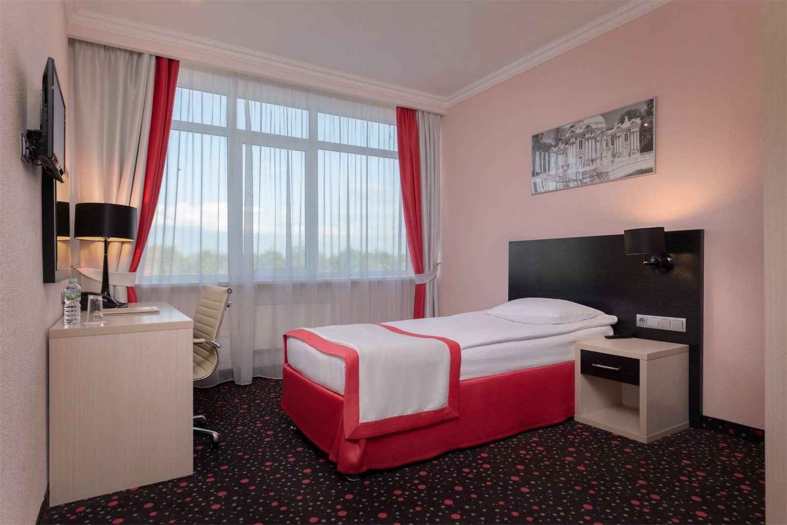 Экономный вариант для проживания одному, номера незначительно могут отличаться по площади от 18 до 23 м². Номер укомплектован индивидуальным набором (мыло, шампунь, гель для душа). По запросу сотрудники предоставят гладильную доску и утюг, швейный набор, обогреватель и чайник. Мини-бар наполняется по запросу согласно правилам отеля при внесении депозита на стойке регистрации.