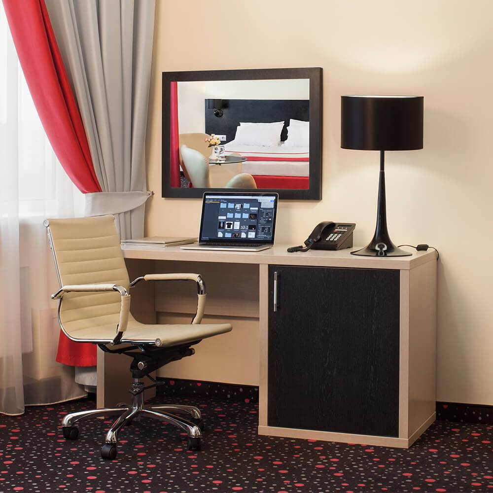 Просторный номер площадью от 20 до 27 м². Номер укомплектован индивидуальным набором (мыло, шампунь, гель для душа). По запросу сотрудники предоставят гладильную доску и утюг, швейный набор, обогреватель и чайник. Мини-бар наполняется по запросу согласно правилам отеля при внесении депозита на стойке регистрации.