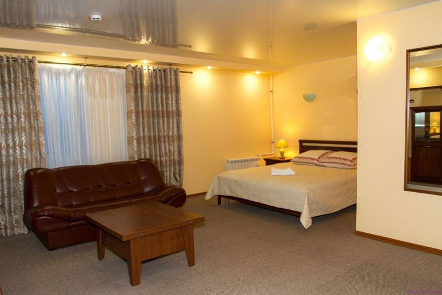 Прекрасный одноместный номер (с дополнительным местом) с большой кроватью, идеально подходящий для комфортного проживания как одного, так и двух гостей. Просторный номер будет удобен для проведения переговоров или встречи с партнёрами, также можно рассматривать как идеальный вариант для размещения супружеской пары или молодоженов.