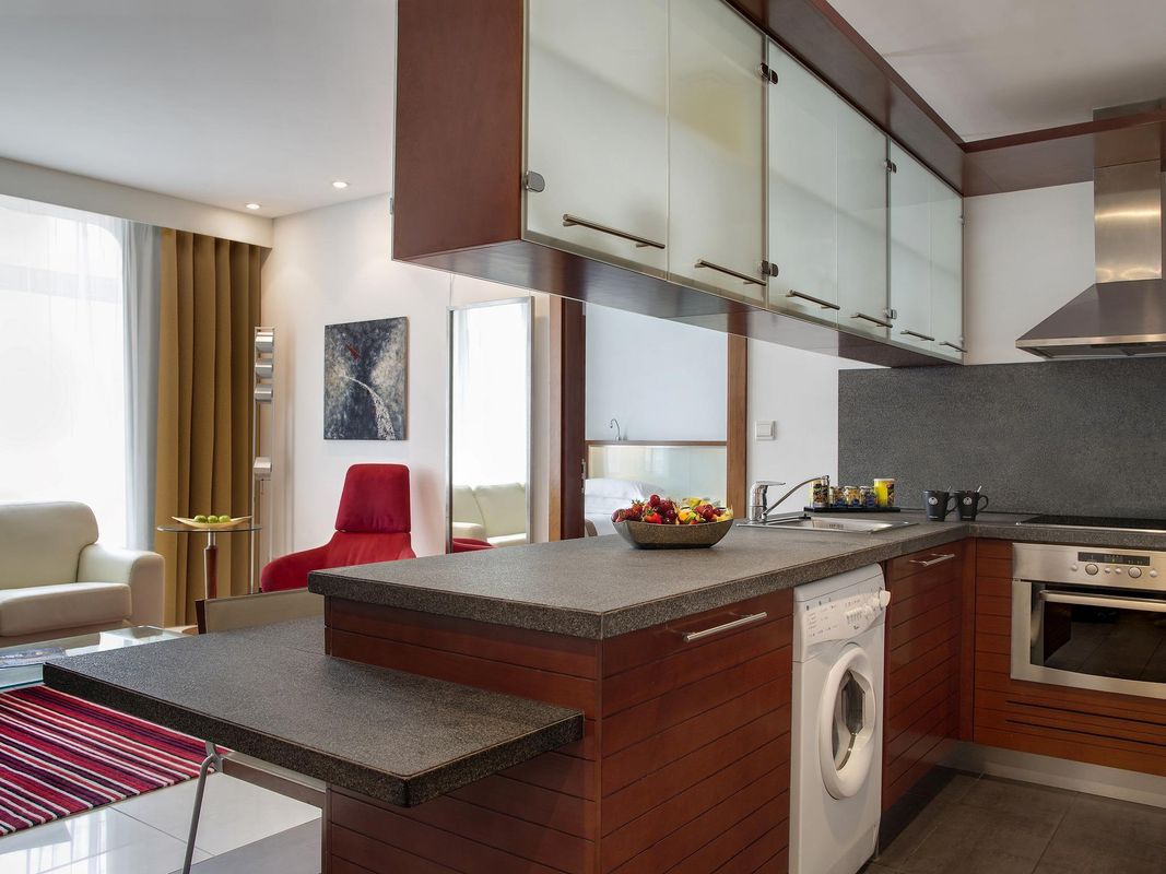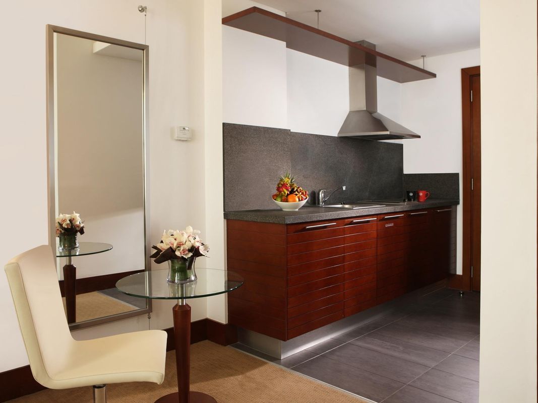 Городской отель Villa Rotana 4* расположен в восточной части города в Бур Дубай, районе который является историческим и деловым центром столицы. Недалеко находится торговый центр Dubai Mall, самая высокая в мире башня Burj Khalifa, бизнес-зона Дубай Медиа Сити и парк информационных технологий Internet City. Расстояние до станции метро Business Bay составляет 300 метров. Собственного пляжа у отеля нет, к муниципальному придется добираться самостоятельно. Отель состоит из одного современного пятиэтажного здания, в котором размещаются 118 номеров, в числе которых просторные двухкомнатные classic suite с гостиной, спальней, ванной комнатой и полностью оборудованной кухней и однокомнатные classic studio и premium studio с ванной комнатой и кухней. В апартаментах есть спутниковое телевидение, телефон, Wi-Fi, сейф, стиральная машина, холодильник, электрический чайник, мини-бар. Питание организовано в ресторане Moka, где подаются блюда интернациональной кухни, у бассейна работает бар. Удобное расположение апарт-отеля в центре инфраструктуры делает его популярным не только среди туристов, любителей шопинга и пляжного отдыха, но и деловых людей. К услугам гостей Villa Rotana открытый бассейн на крыше, фитнес-центр, тренажерный зал Bodylines. За дополнительную плату гости могут воспользоваться СПА-центром, услугой room service и оборудованными конференц -залами, которых в отеле семь. В Villa Rotana всегда рады приветствовать одиноких путешественников, семьи с детьми и деловых людей. Вежливый персонал окружит заботой и вниманием, создаст все условия для комфортного отдыха.
