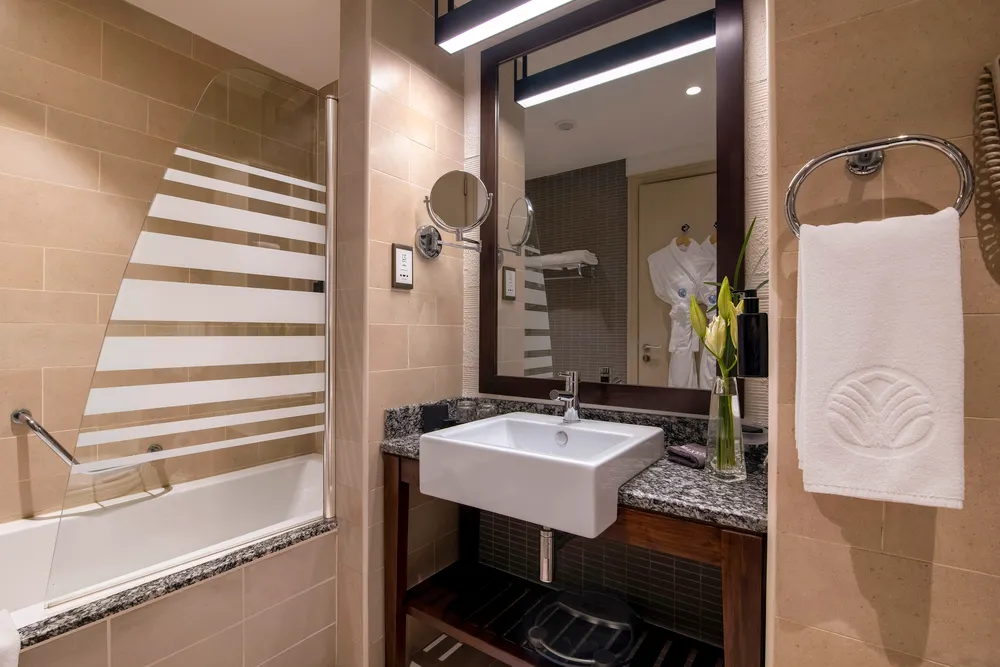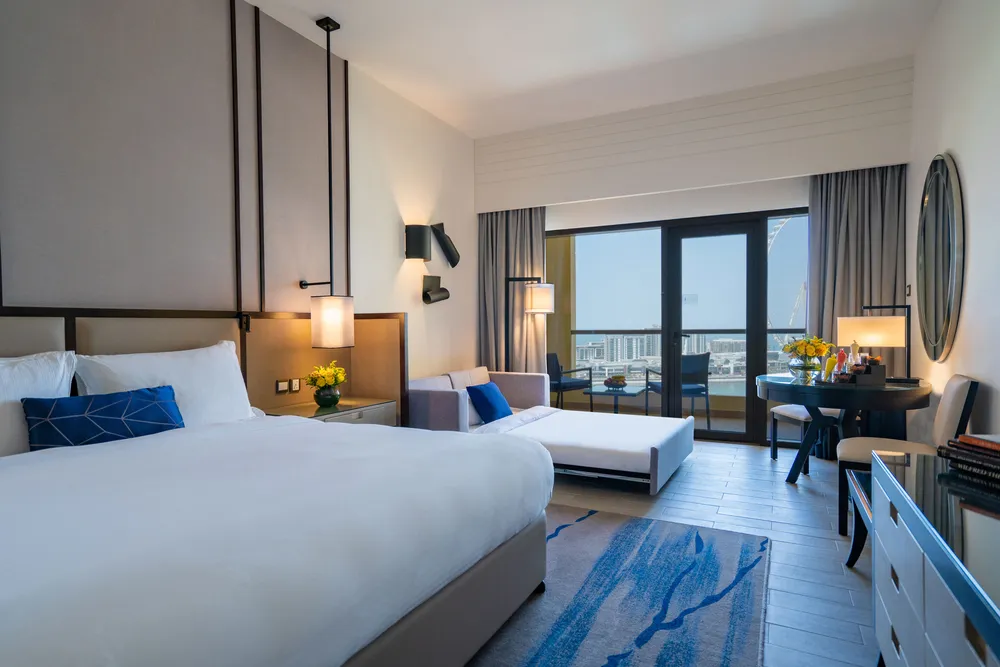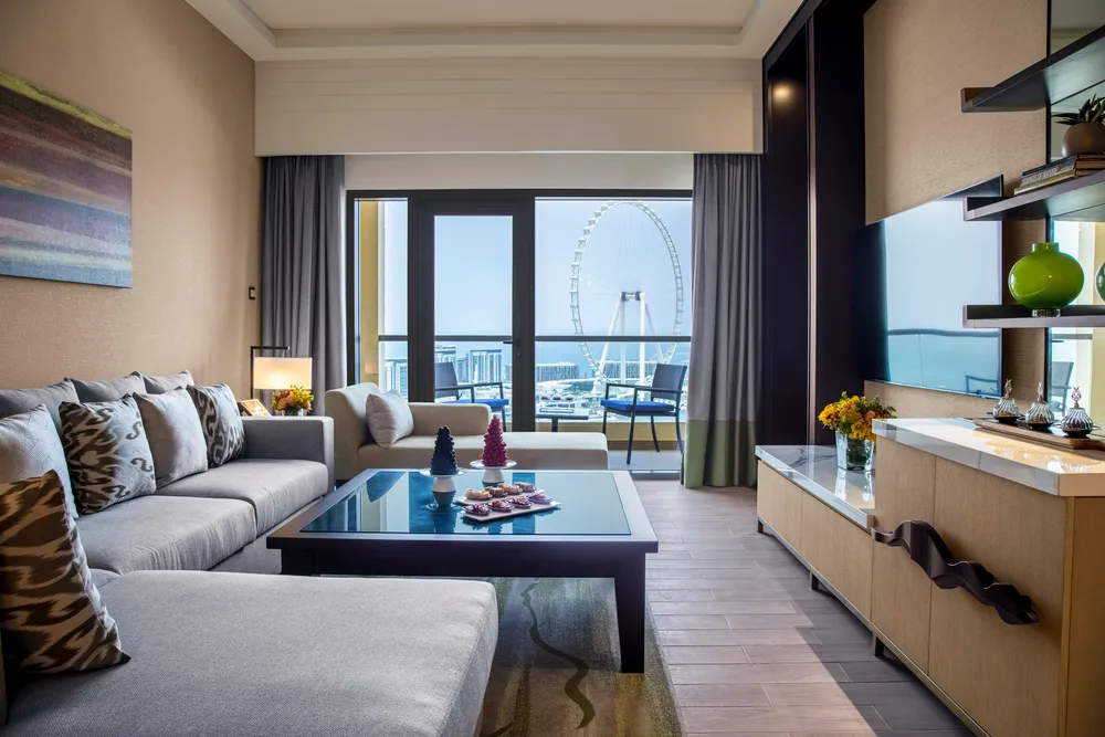 Отель стоит в самом центре Дубай Марины рядом с Персидским заливом. Это один из лучших пятизвездочных отелей класса люкс в районе Марина. Рядом с ним располагаются популярные достопримечательности курорта: знаменитый пляж Джумейра, торговый центр The Beach с детским аквапарком, остров с самым высоким в мире колесом обозрения. Территория у отеля компактная, но довольно живописная, со множеством локаций для интересных фото и видео. Бассейн здесь оборудован прямо над автомобильной дорогой, благодаря такому решению, гости не видят постоянно проезжающие автомобили. Рядом с большим бассейном находится детский «лягушатник», защищённый тентом от палящего солнца. Муниципальный пляж, расположен через прогулочную набережную от отеля. Поскольку пляж не оборудован, в отеле туристам бесплатно выдают не только полотенца, но и циновку, переносной зонтик, пляжную сумку и даже специальный контейнер-термос для напитков. На берегу отдыхающих ждет мелкий приятный песок и пологий вход в море. Все номера в отеле просторные, с элегантными интерьерами и балконами с видом на Персидский залив и городские пейзажи. Есть «стандарты» площадью 42 м² и клубные номера, большие роскошные люксы и удобные семейные номера. Все помещения отлично оборудованы, мебель и техника везде новые и есть всё необходимое, включая IDD-телефон с голосовой почтой, кофеварку, гладильную доску и утюг, тапочки и халаты, а также качественную французскую косметику для душа. В отеле работают рестораны, отмеченные престижными наградами. Здесь есть известный японский ресторан Benihana, гастрономический бар JB's с блюдами из меню британских и американских пабов, шикарный ресторан и бар Rosso, предлагающий аутентичную итальянскую кухню. Помимо напитков, в баре у бассейна предлагают фаст фуд и пиццу, а вкусные коктейли и алкоголь подают в лобби-баре. Круглосуточно работает основной ресторан Horizon. Концепции питания в отеле предлагают самые разные, а шведский стол настолько разнообразен, что каждый гость всегда найдёт себе блюда по вкусу. Туристам, выбравшим систему ВВ, в подарок полагается один обед или ужин, а поменять местами дневную и вечернюю трапезу можно легко уже во время отдыха. Поддерживать форму гостям помогает фитнес-клуб Bodylines с отлично оборудованным тренажёрным залом, джакузи, паровой баней и сауной. Для туристов, приехавших на отдых с маленькими детьми, в отеле работает детский клуб Flipper's для ребят разного возраста. Малышей можно оставить за дополнительную плату с няней или бесплатно с воспитателем в детской игровой, расположенной в здании. За территорией отеля гостей ждёт аллея The Walk с разнообразными ресторанами, кафе и магазинами. Рядом есть бутики известных марок, аптеки и банкоматы. Расположенные в шаговой доступности станция метро и трамвайная остановка позволяют туристам легко передвигаться по городу самостоятельно.