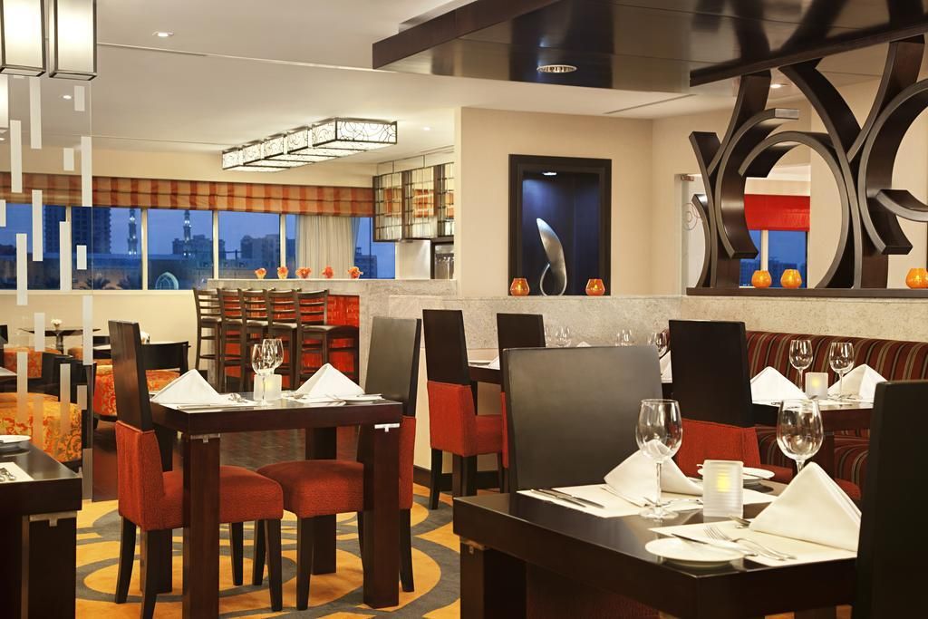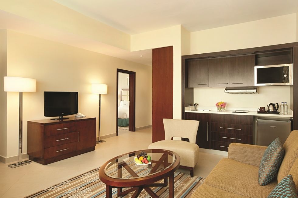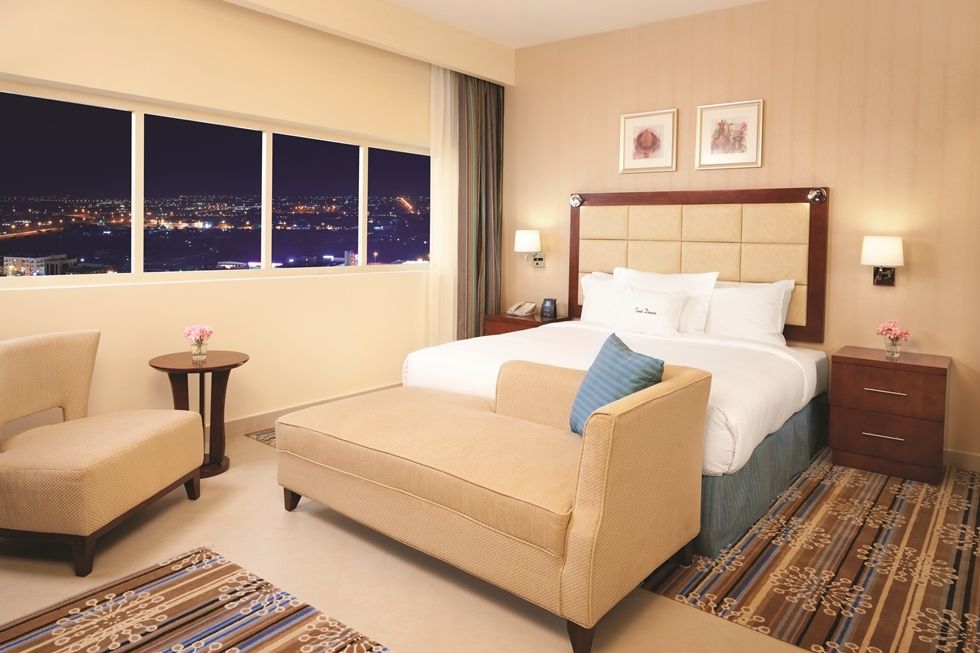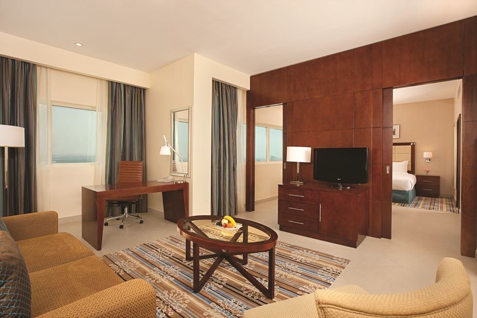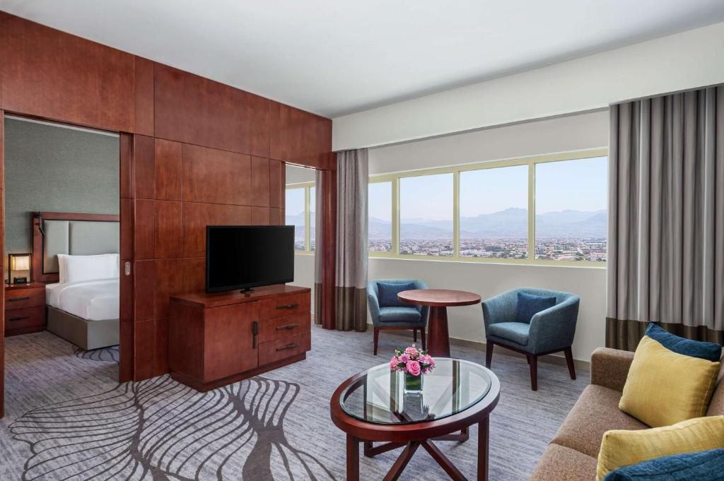 Отель находится в эмирате Рас Аль Хайма, в 100 км от аэропорта. Недалеко от него располагается музей Рас-Эль-Хаймы, гольф-клуб, Форт Дхаян, аквапарк Iceland Water Park и экспоцентр Рас Эль Хаймы. Отель прекрасно подойдёт для деловых людей, понравится любителям шоппинга и экскурсий, а также ценителям пляжного отдыха. В высотном здании отеля 154 номера. Все комнаты просторные, чистые, уютные, в наличии всё необходимое для комфортного отдыха. Есть стандартные номера, а также варианты с гостиной зоной и кухней. Уборка в комнатах производится каждый день. Гости отеля могут пользоваться пляжем Hampton by Hilton Marjan Island, который находится в 31 км. Туда несколько раз в день отправляется бесплатный автобус. Пляж песчаный, комфортный, с пологим входом в воду. Отель предлагает туристам различные концепции питания, в том числе и всё включено. К услугам гостей основной ресторан Podium со шведским столом, на котором преобладают блюда интернациональной кухни, бар Treetop и кафе в лобби. Питание в отеле нравится большинству туристов. Некоторые, правда, отмечают не очень большое разнообразие блюд на шведском столе и присутствие достаточно острой еды. Выбранная отдыхающими концепция действует и в пляжном ресторане, где можно перекусить или пообедать, если не хочется возвращаться в отель, а также в баре отеля-партнёра Hampton by Hilton Marjan Island. На последнем этаже здания находится СПА-комплекс, а на крыше отеля располагается открытый бассейн с регулируемой температурой. Гости также могут бесплатно посещать бассейны отеля Hampton by Hilton Marjan Island. К услугам туристов тренажёрный зал, бесплатный Wi-Fi, магазин и интернет-кафе.