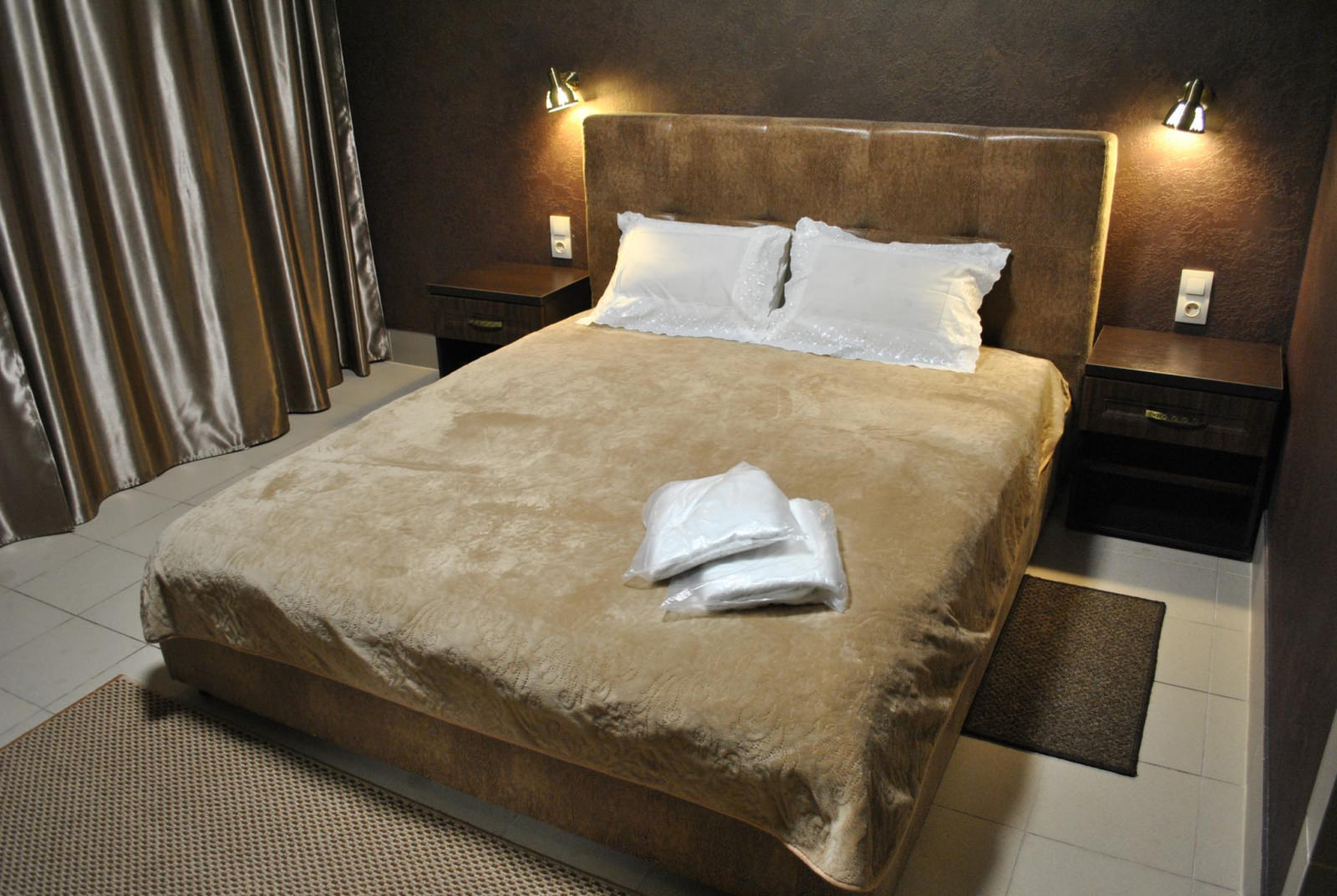 Кровать King size, плазменный телевизор, Wi-fi, холодильник, душ, посуда, кондиционер.