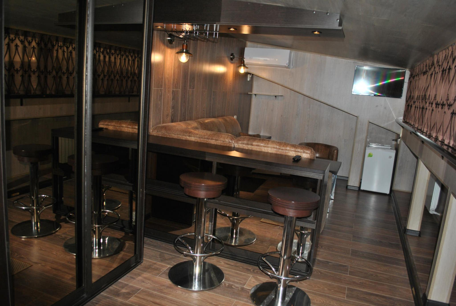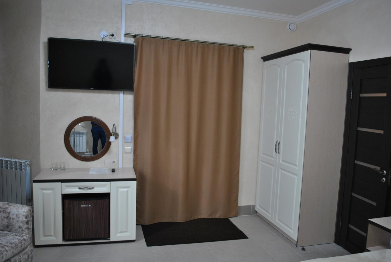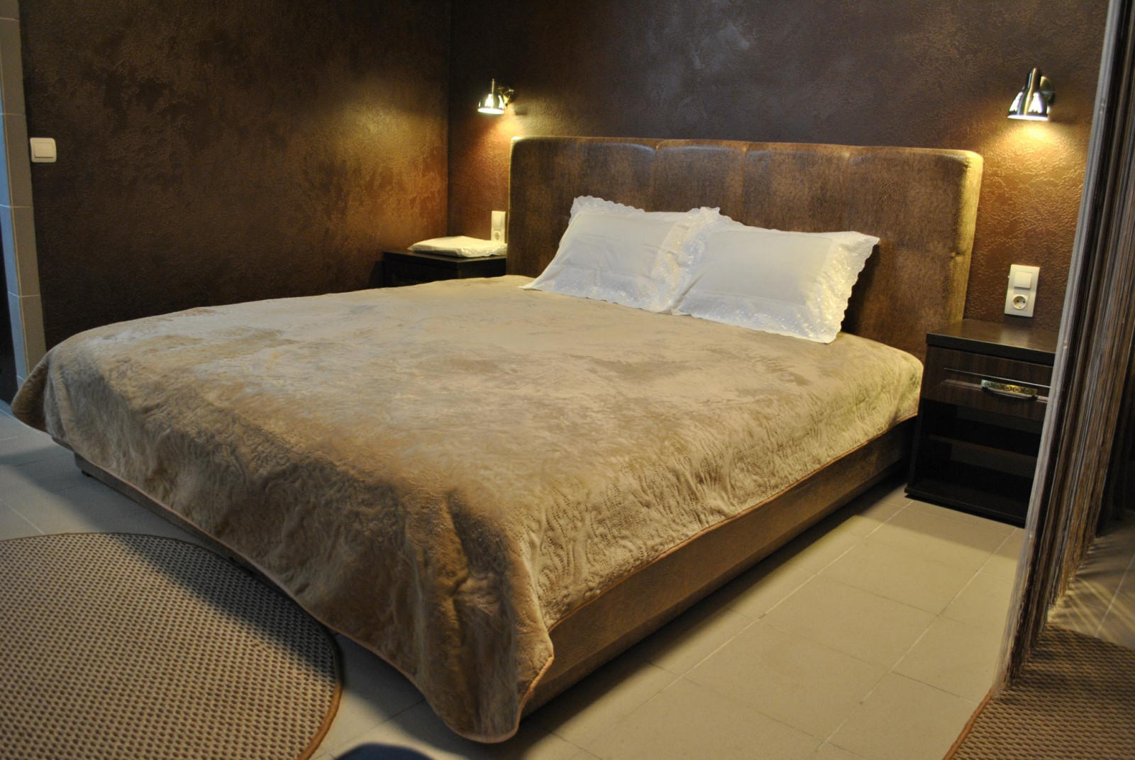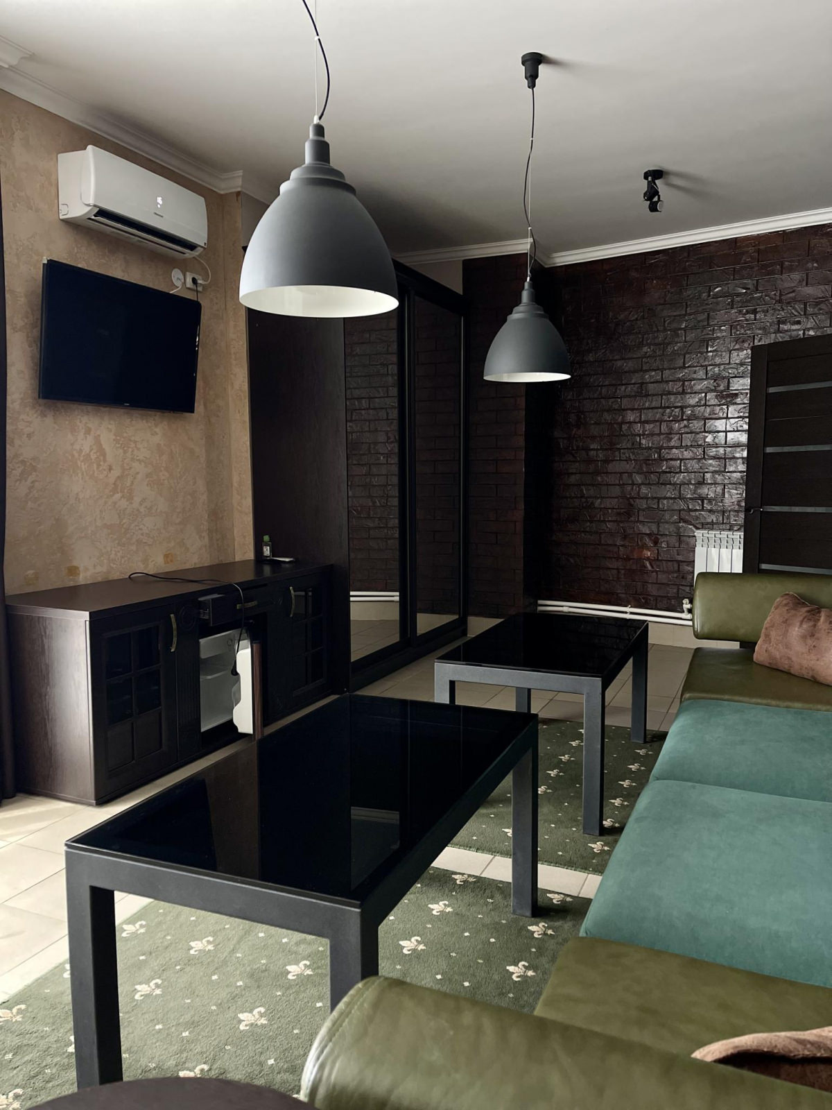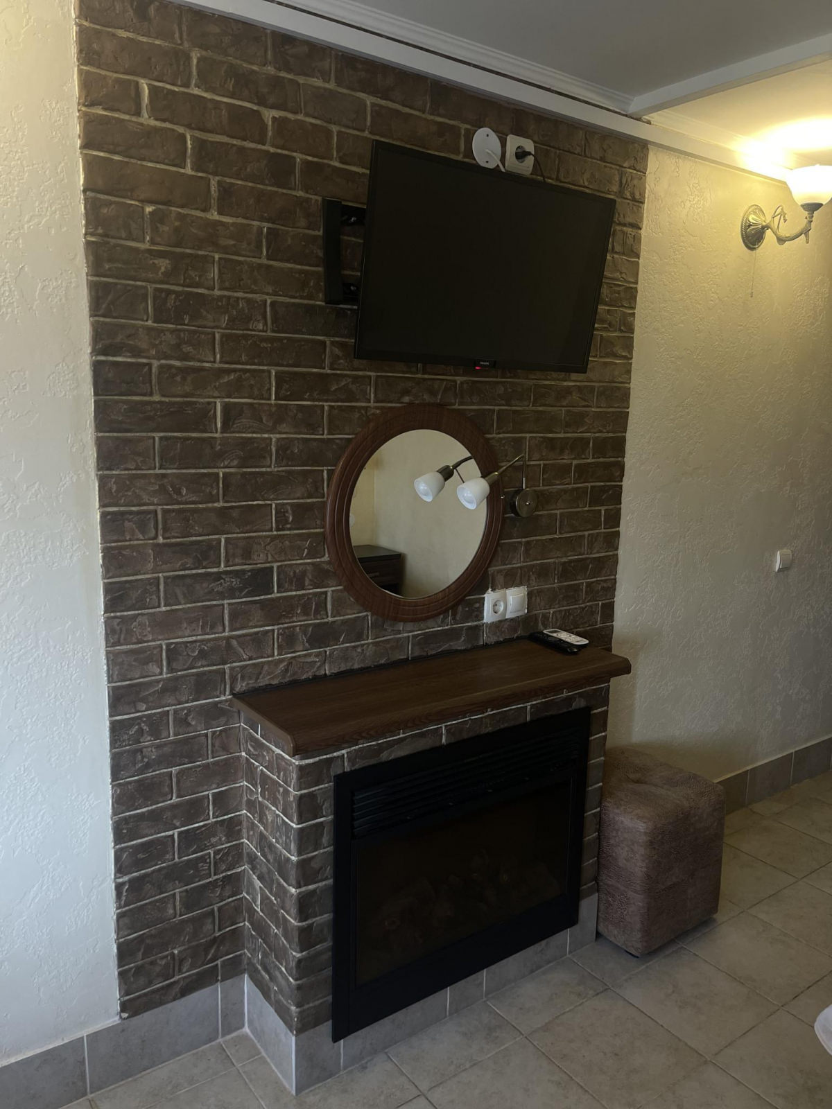 Кровать King size, диван не раскладывается, плазменный телевизор, Wi-fi, холодильник, душ, посуда, камин, кондиционер. В этом номере возможно дополнительное спальное место.