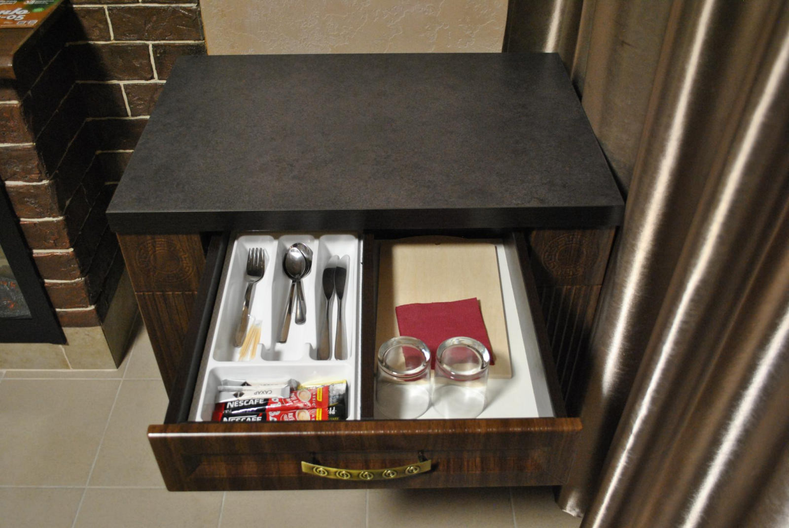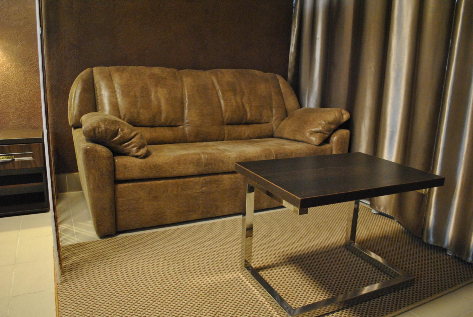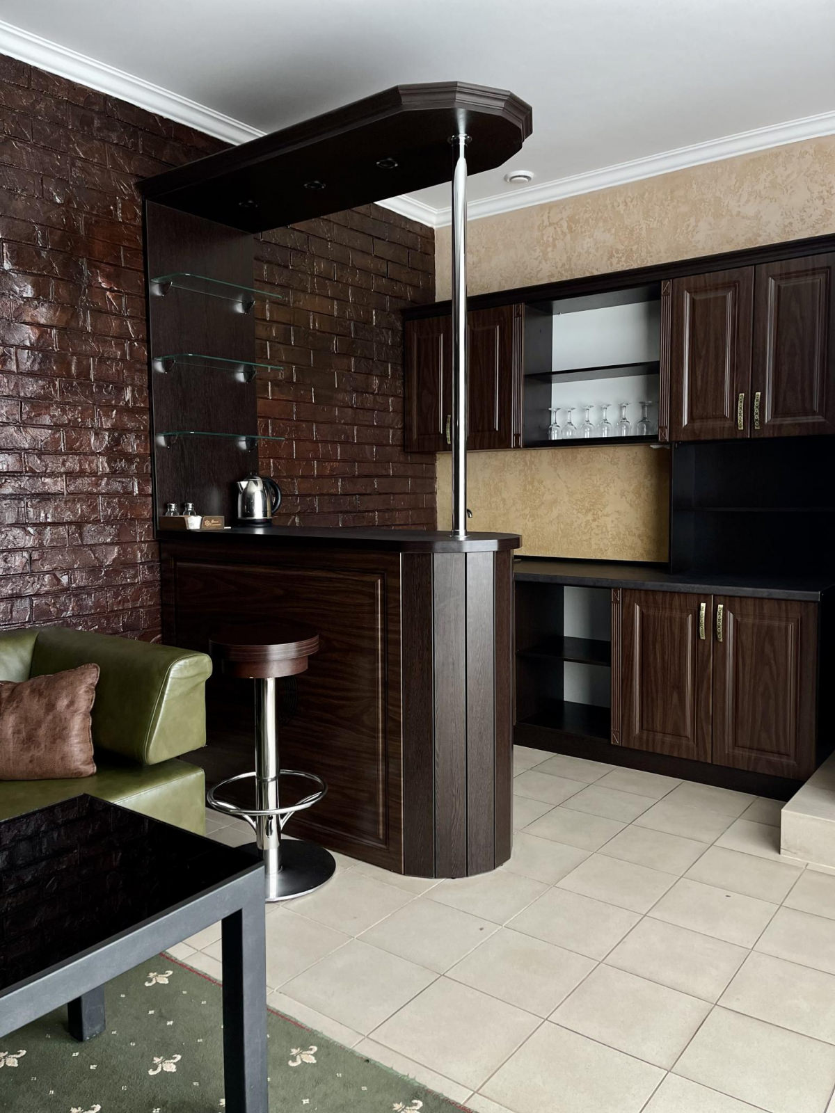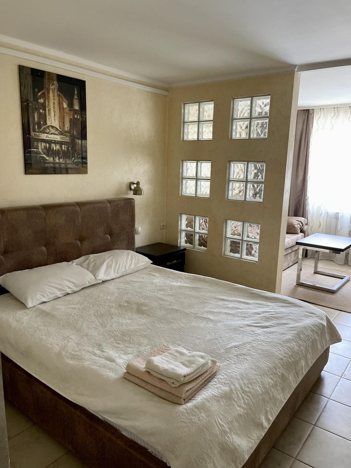 Кровать King size, диван не раскладывается, плазменный телевизор, Wi-fi, холодильник, душ, посуда, камин, кондиционер. В этом номере возможно дополнительное спальное место.