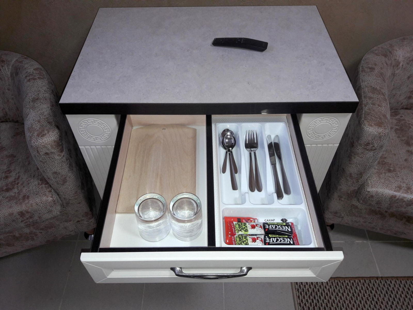 Комфортный диван-кровать, плазменный телевизор, Wi-fi, холодильник, душ, посуда, кондиционер.