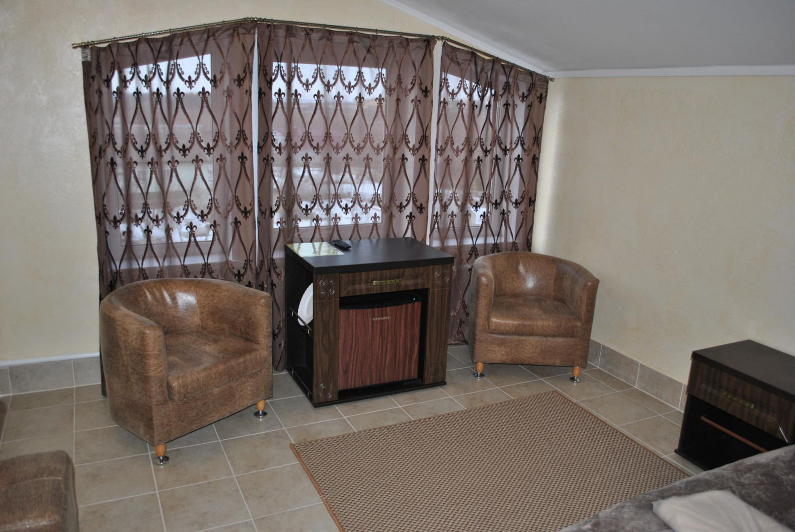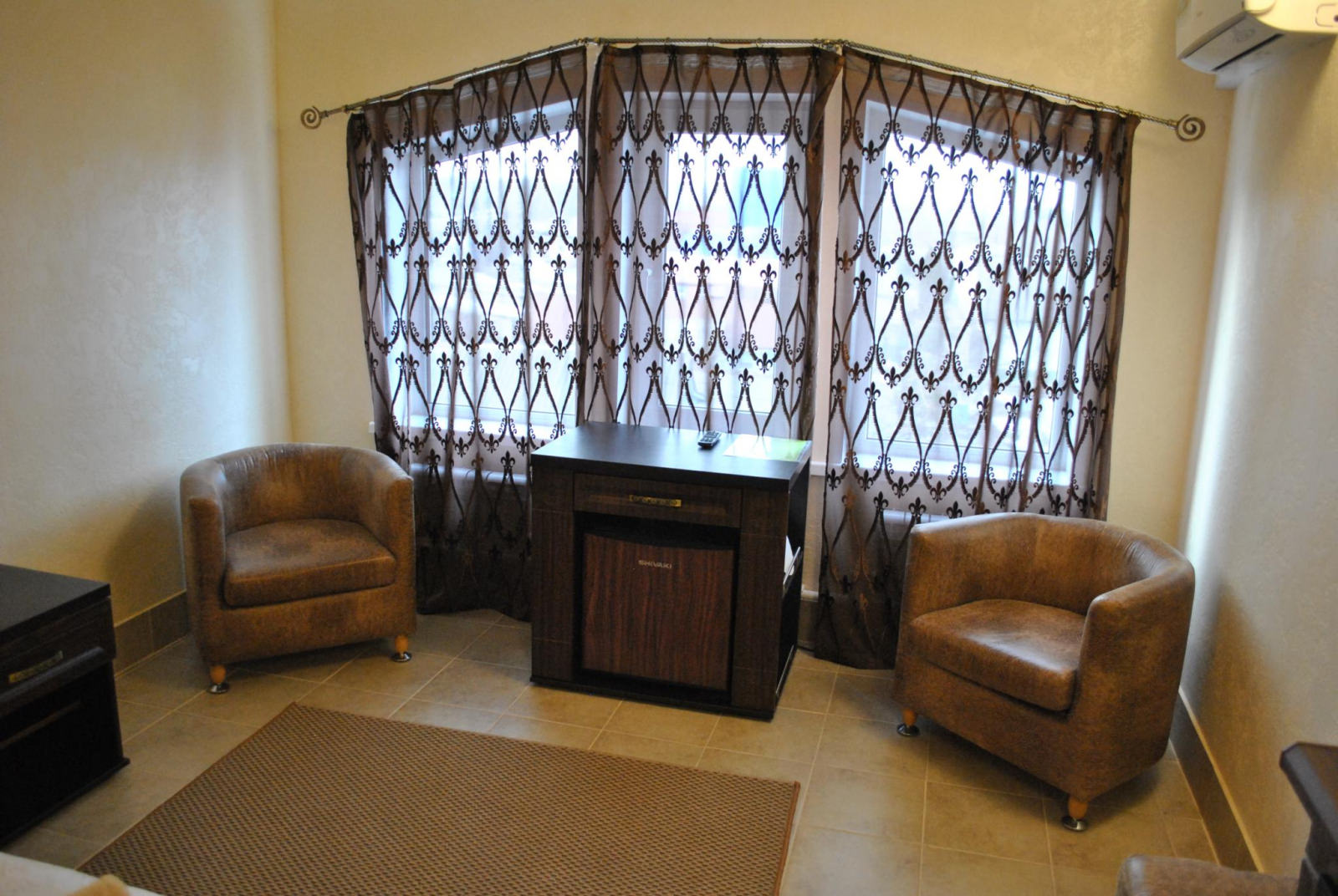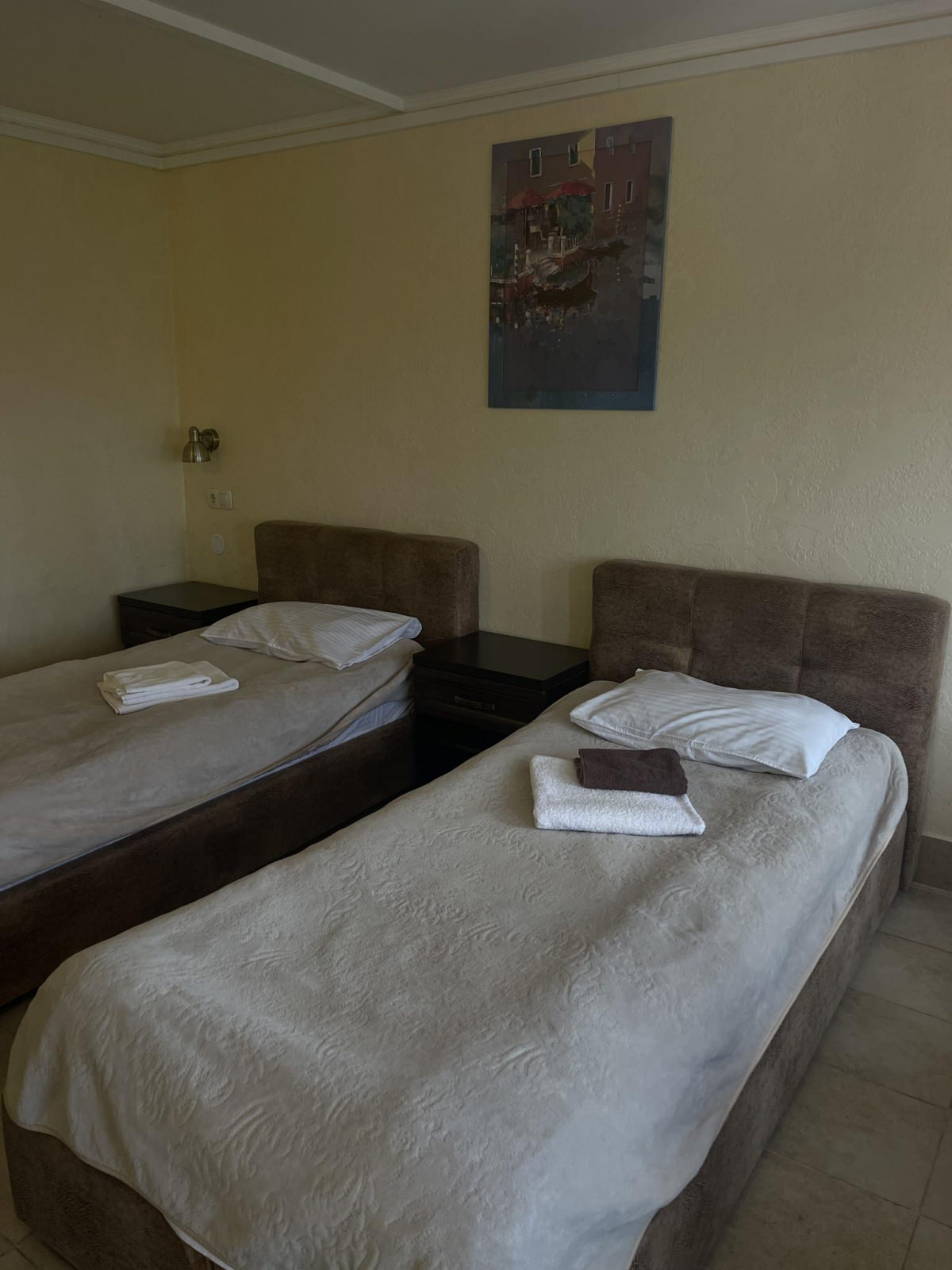 Номер с 2 односпальными кроватями, плазменный телевизор, Wi-fi, холодильник, душ, посуда, камин, кондиционер.
