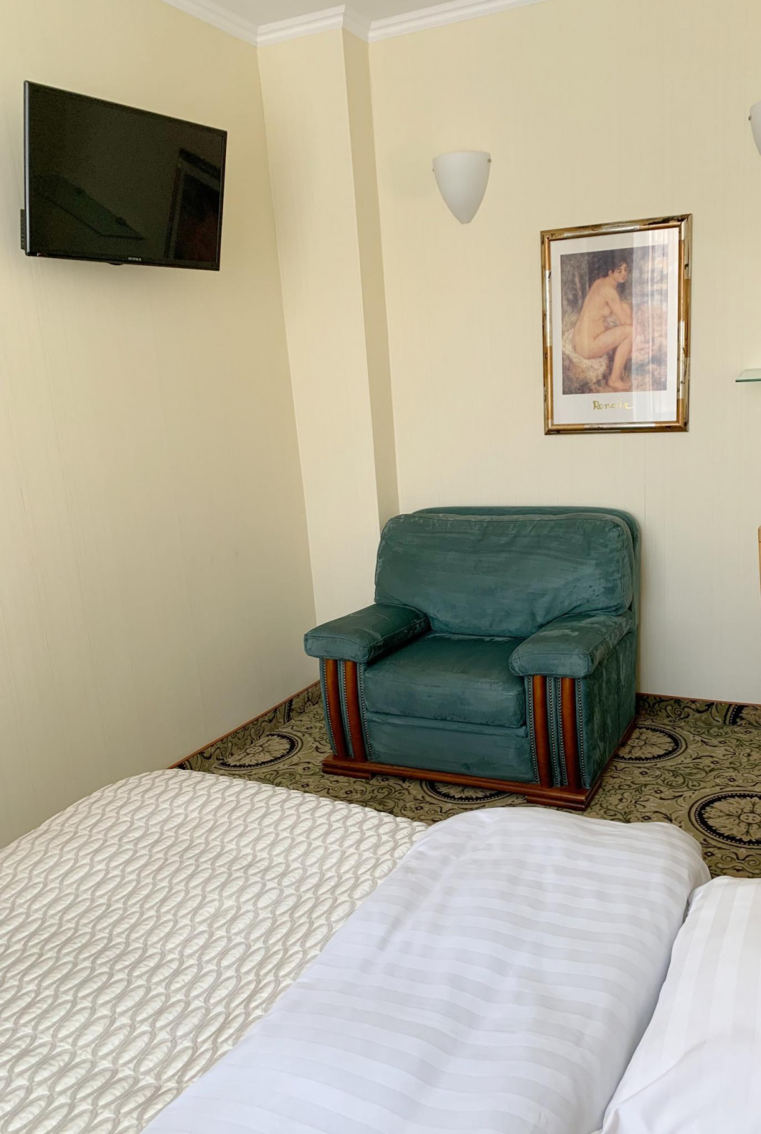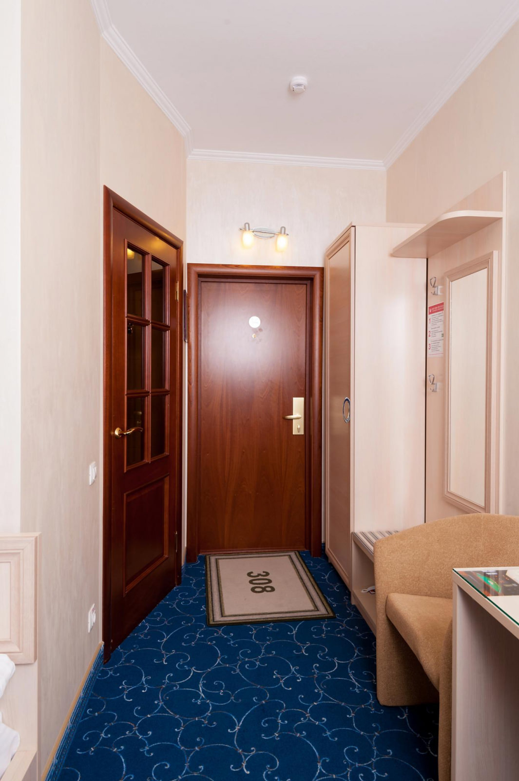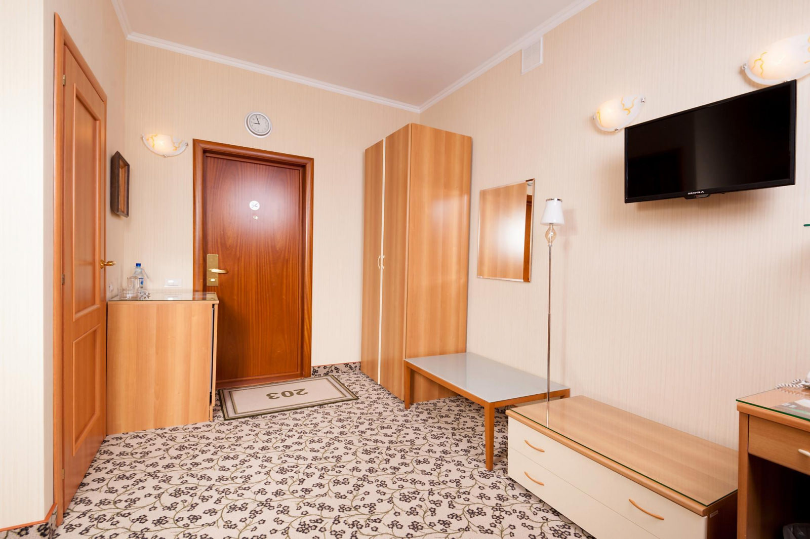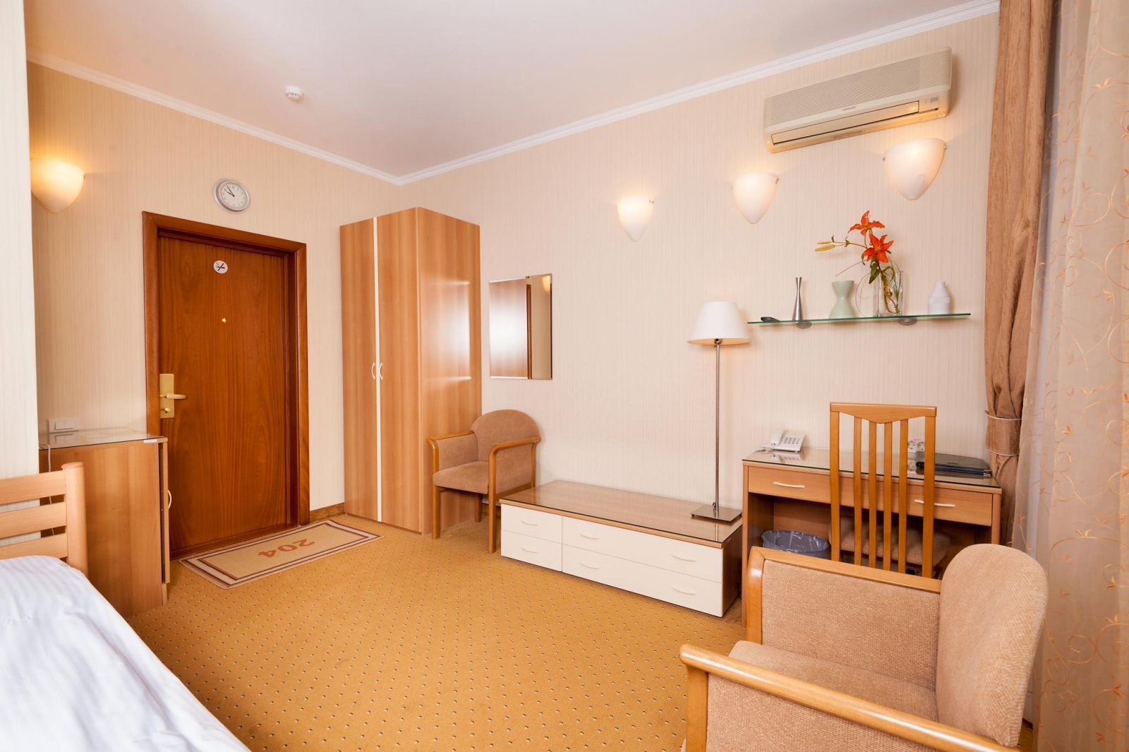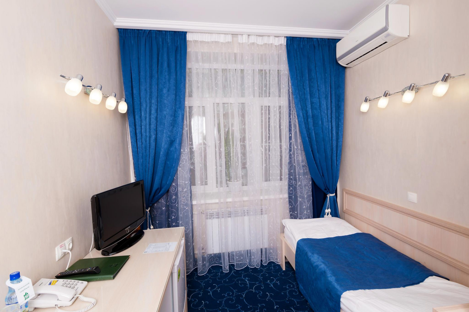 Одноместный номер Экономкласса площадью 12 м² — удобный и доступный номер с одноместной кроватью. Это скромные и аккуратные номера для экономных путешественников. Часто в этих номерах располагаются помощники VIP-гостей, ведь эти номера находятся рядом с Люксами.