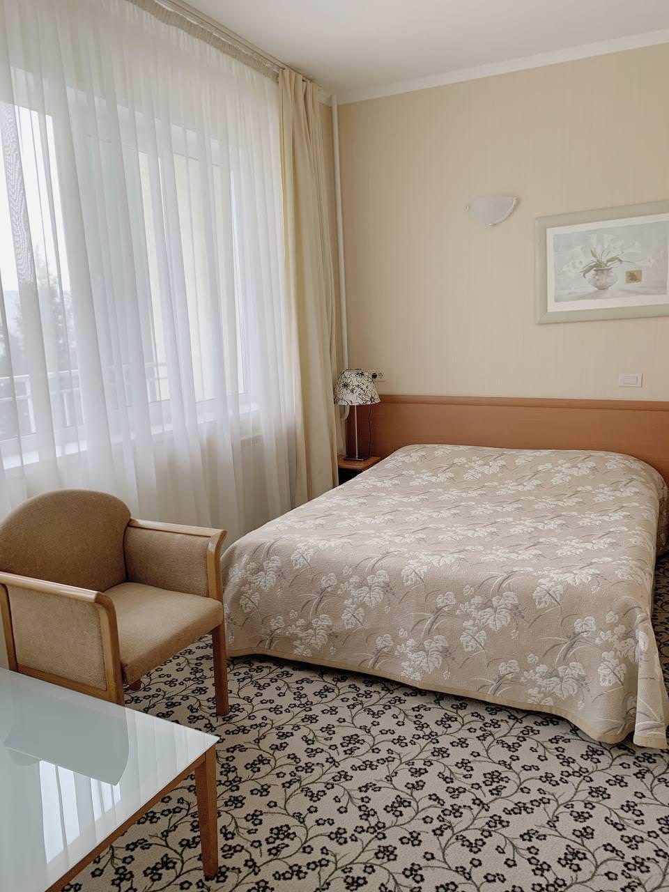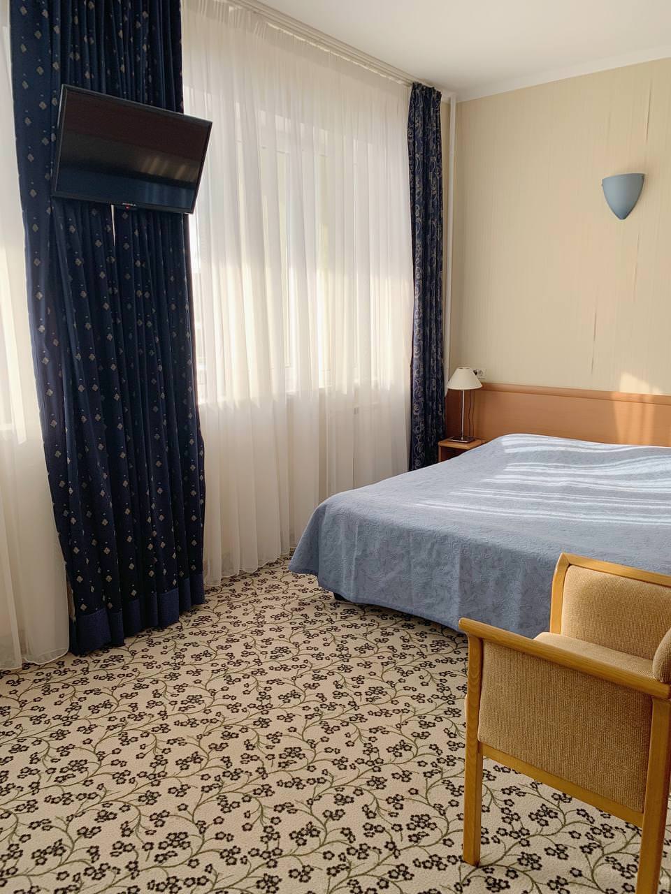 Однокомнатный СТАНДАРТ площадью 25 м² с роскошной полутора или двуспальной кроватью отлично подойдет для отдыха после трудового дня. Здесь есть удобный рабочий стол, за которым легко планировать новый день, а также мягкое кресло/ диван, где можно посмотреть любимый фильм перед сном. Уютный и простой номер для вас, если вы цените комфорт за разумные деньги.