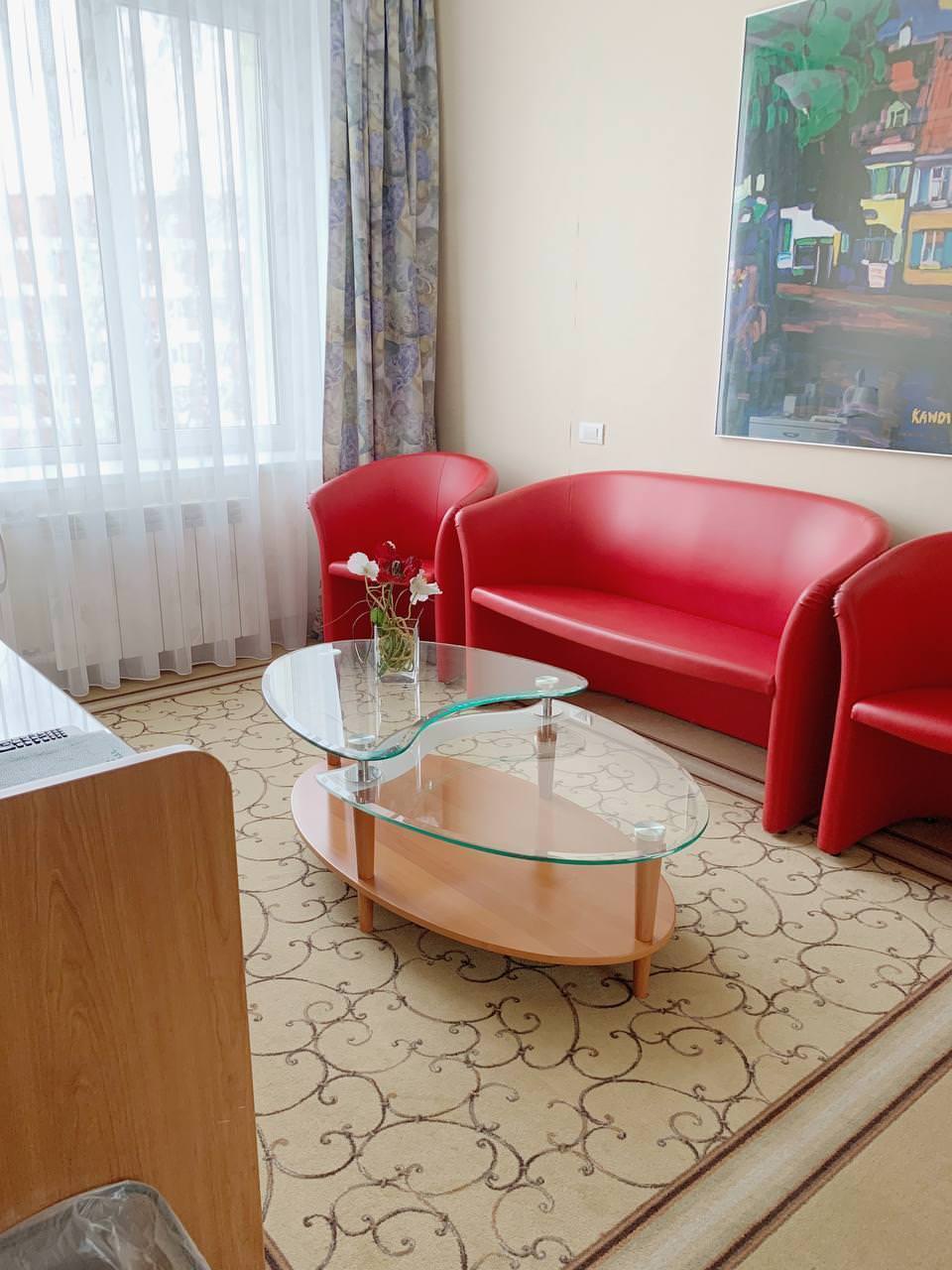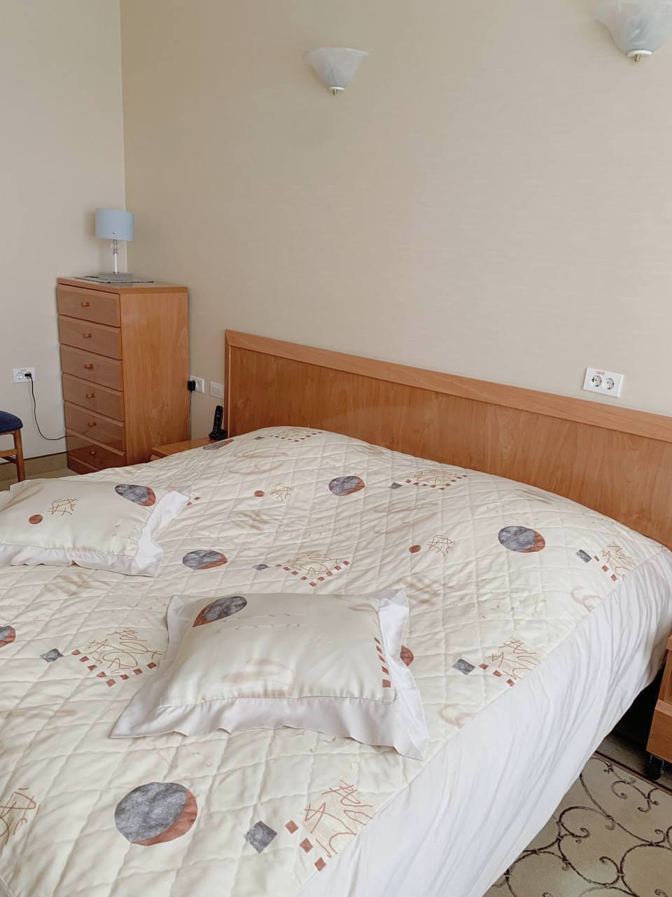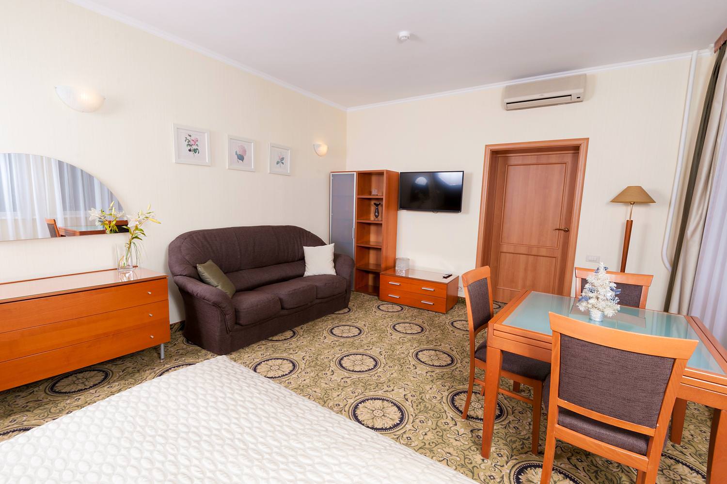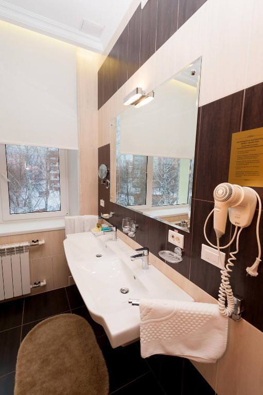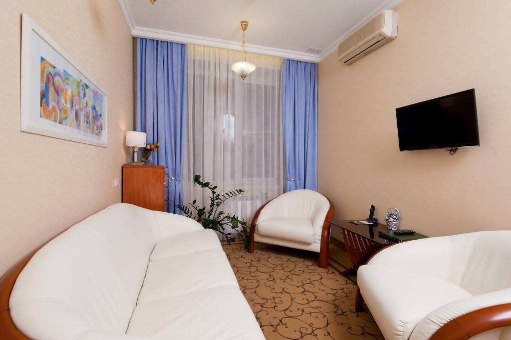 Просторный 2-комнатный ЛЮКС площадью 65 м² примет вас после насыщенного дня. Вы сможете расслабиться в большой ванне или под теплым душем, а вечером — отдохнуть в гостиной перед телевизором один или с гостями. Для посетителей вашего номера предусмотрен второй санузел, так что никто, кроме вас, не будет заходить в спальную комнату. Двуспальная кровать с ортопедическим матрасом и гипоаллергенным постельным бельем позволят вам выспаться, а значит — плодотворно провести следующий день.