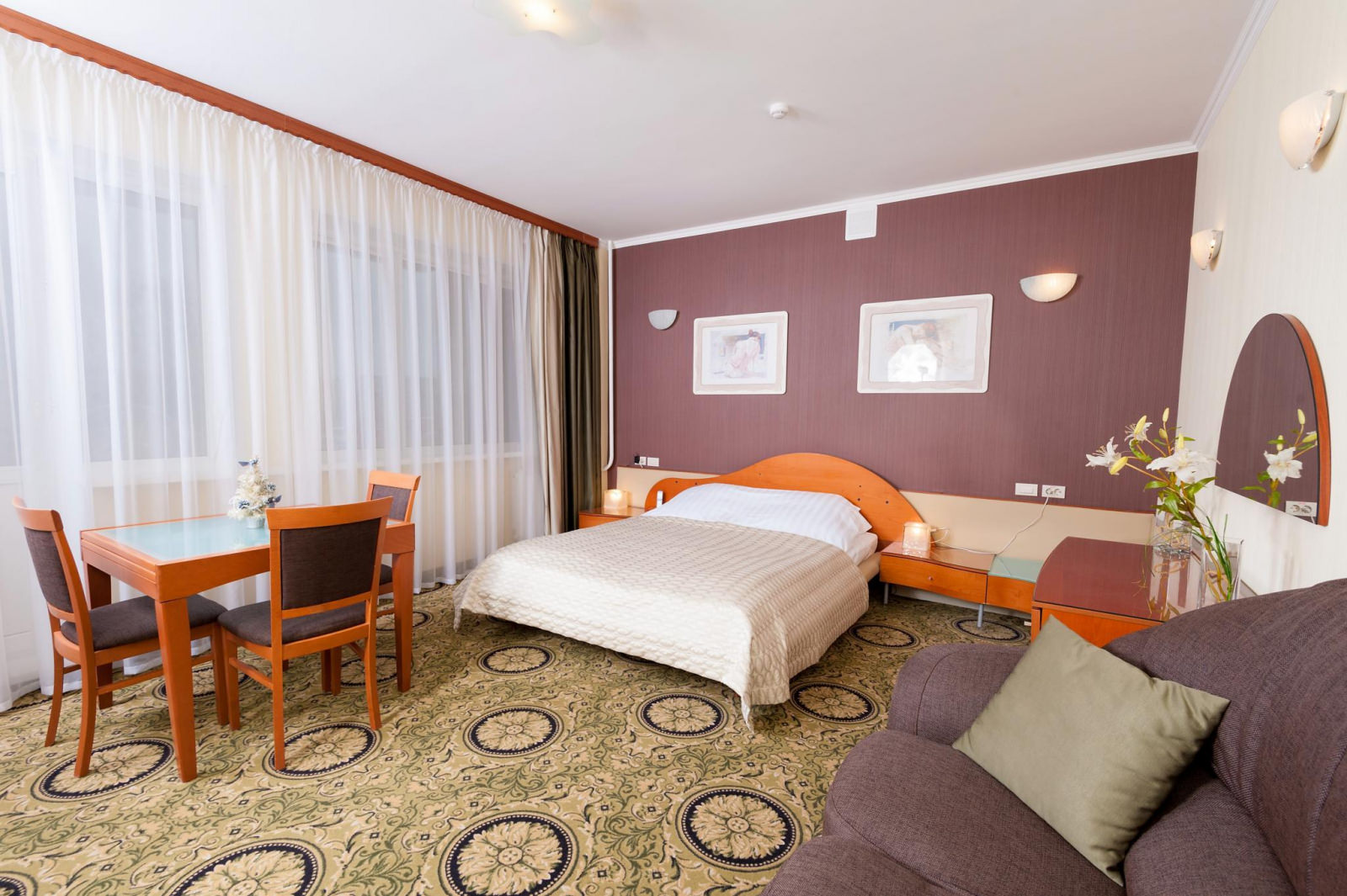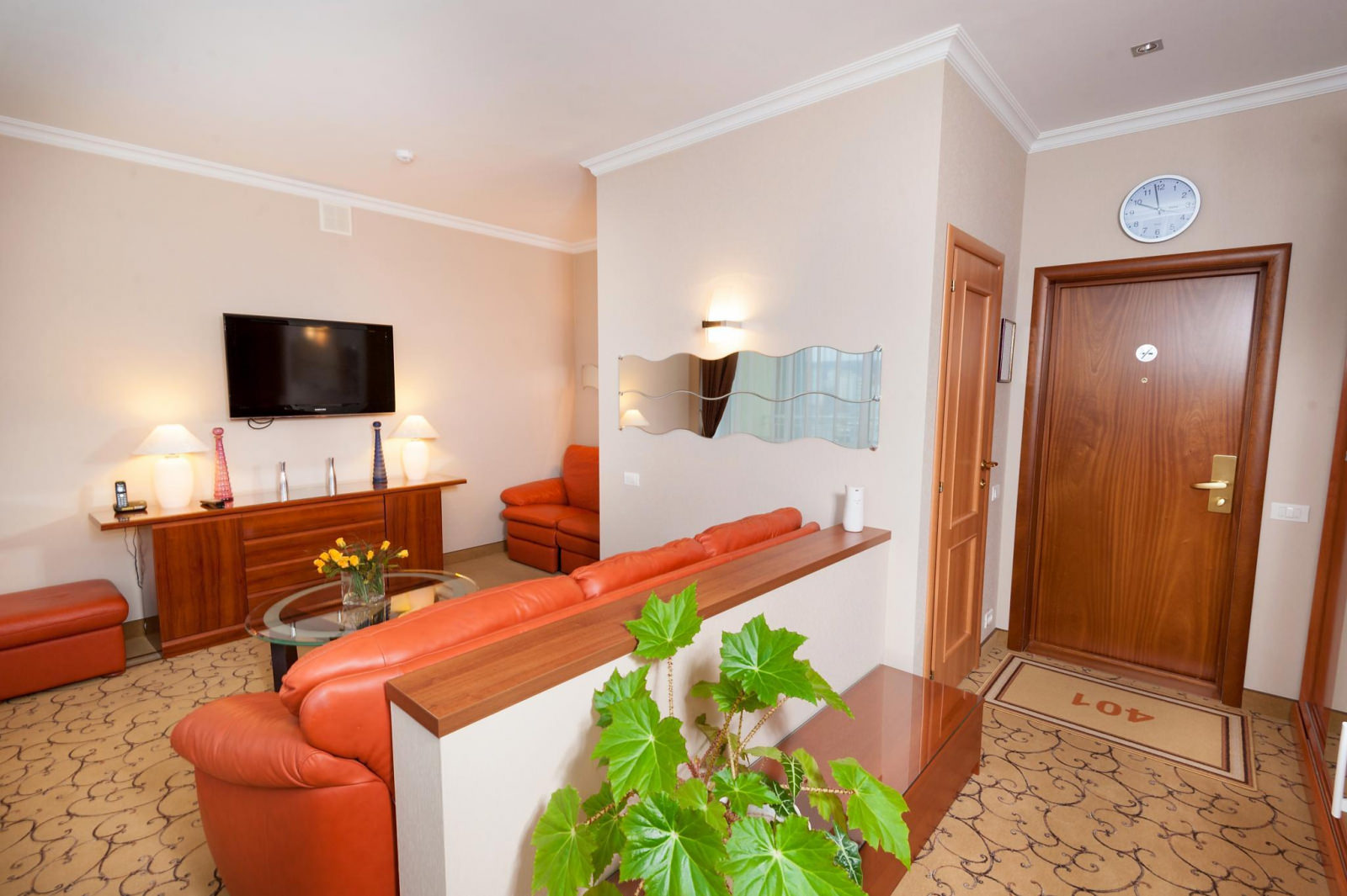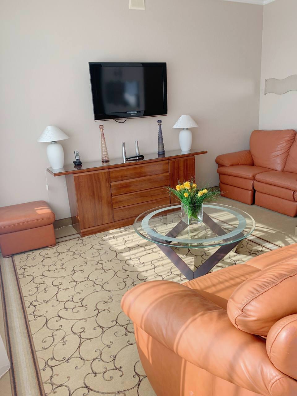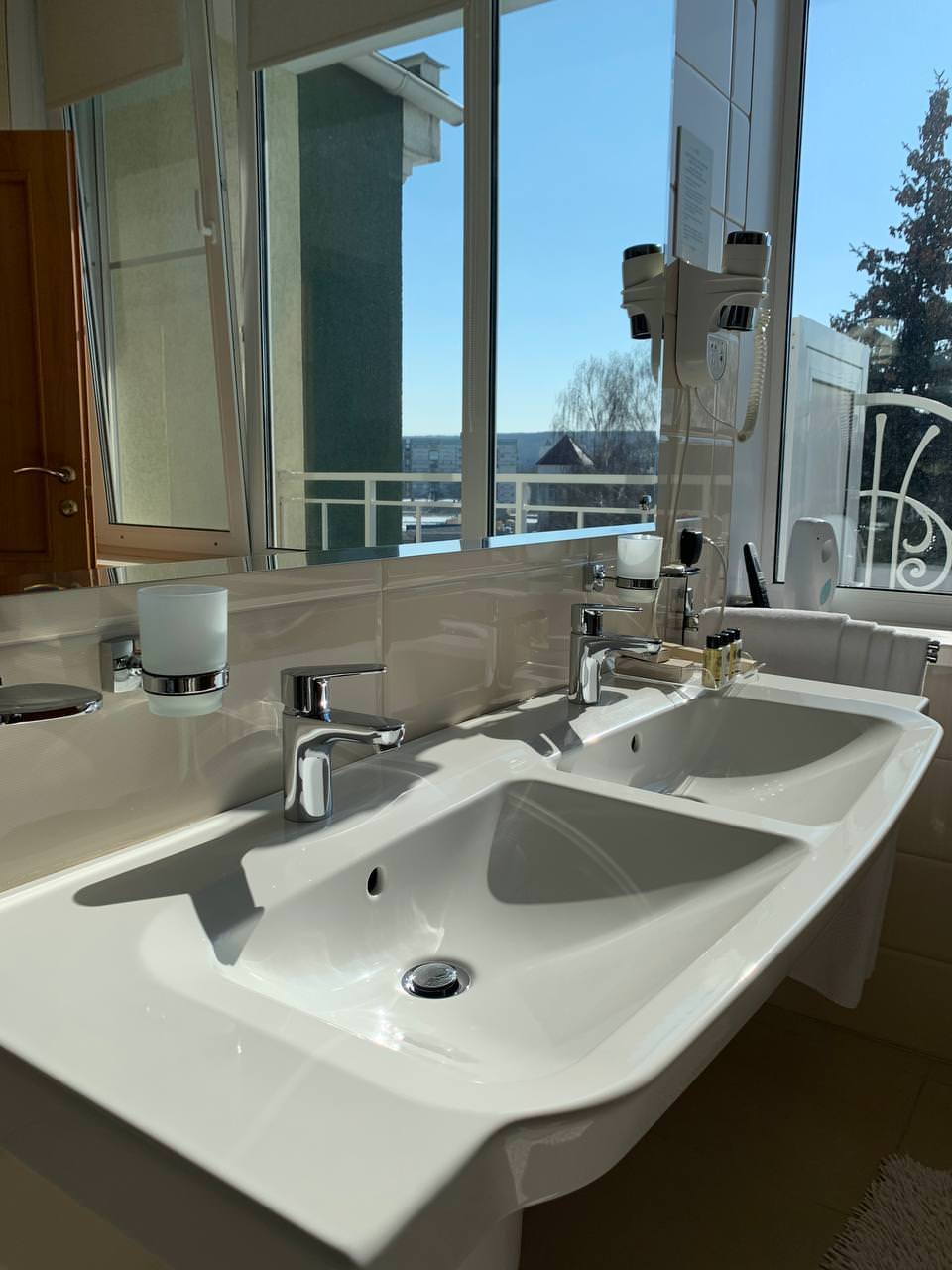 Просторный 2-комнатный ЛЮКС площадью 65 м² примет вас после насыщенного дня. Вы сможете расслабиться в большой ванне или под теплым душем, а вечером — отдохнуть в гостиной перед телевизором один или с гостями. Для посетителей вашего номера предусмотрен второй санузел, так что никто, кроме вас, не будет заходить в спальную комнату. Двуспальная кровать с ортопедическим матрасом и гипоаллергенным постельным бельем позволят вам выспаться, а значит — плодотворно провести следующий день.