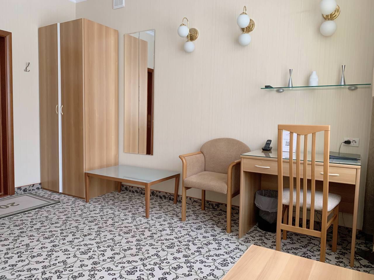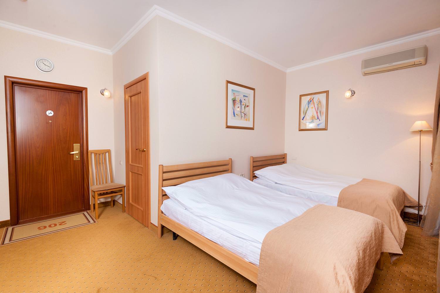 Двухместный СТАНДАРТ 25 м² с двумя одноместными кроватями. Если вы путешествуете рабочей парой, то этот номер — как раз для вас. Две односпальные кровати, письменный стол для работы — здесь есть все, чтобы эффективно подготовиться к встрече или подвести итоги рабочего дня. Эти номера — прекрасное решение для тех, кто ценит коллективную работу и комфорт.