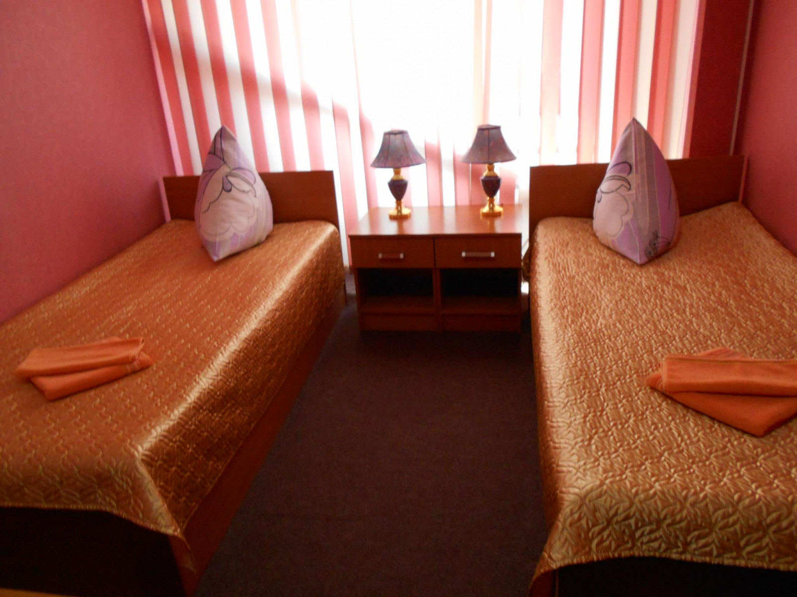 Однокомнатный четырехместный номер,четыре односпальные кровати,шкаф плательный, прикроватные тумбочки, кондиционер,ТВ,Wi-Fi.холодильник, ванная комната оборудована душевой кабиной, санузлом,бесплатными туалетно-косметическими принадлежностями (полотенце, тапочки, фен). Для гостей отеля доступна прачечная, гладильная.