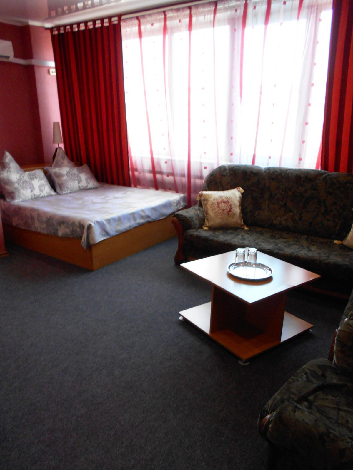 Однокомнатный номер: Wi-Fi,кондиционер,двухспальный гарнитур,угловой диван,холодильник,плазма,москитная сетка,душ.кабина,сан.узел,туалетные принадлежности.