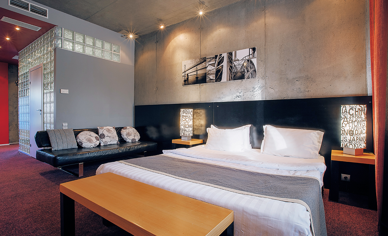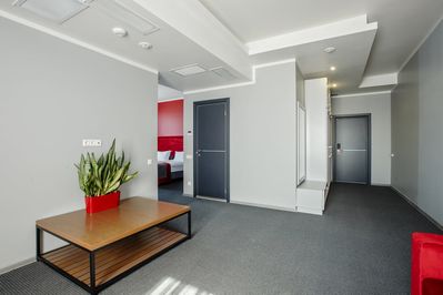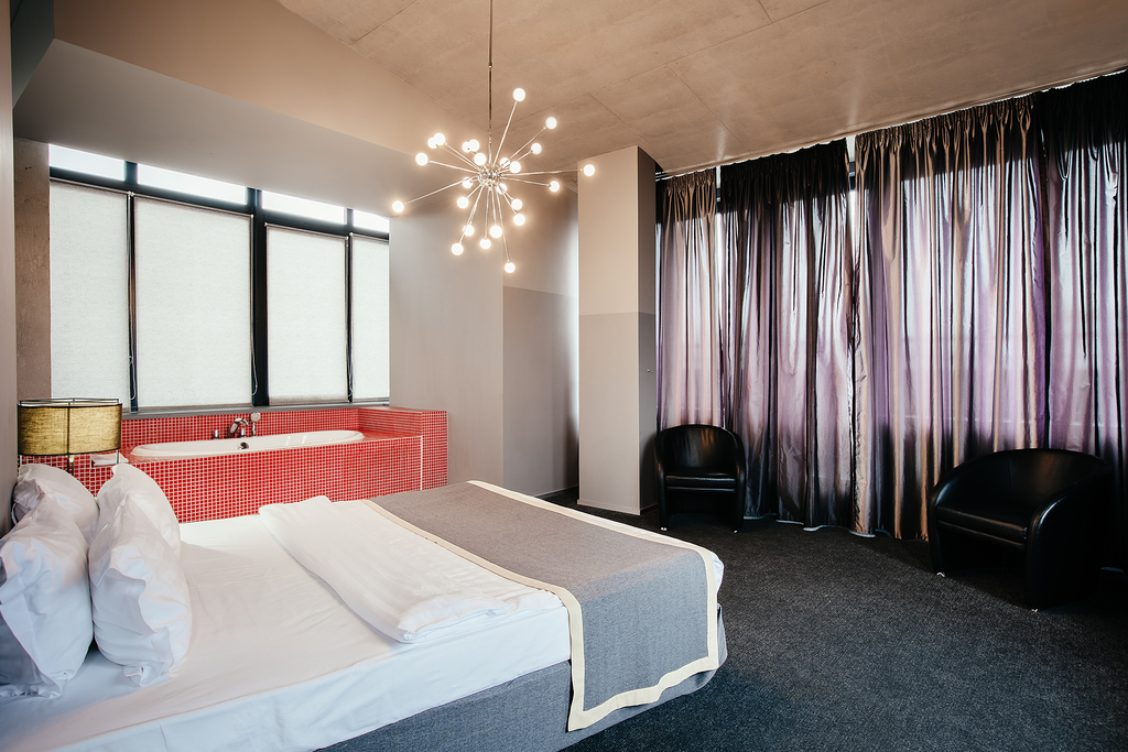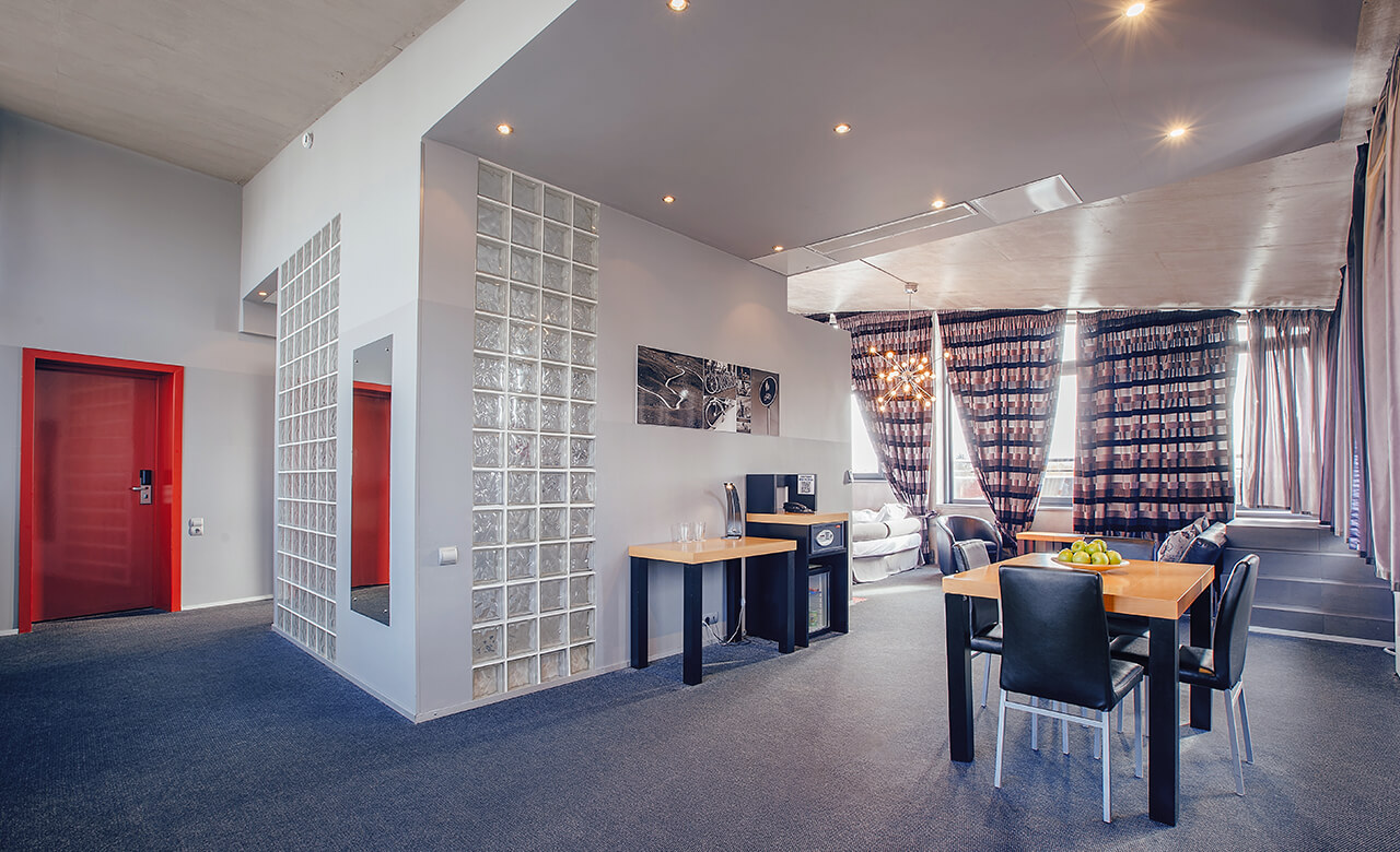Номер площадью 24 квадратных метра, оформленный в стиле хай-тек, рассчитан максимум на 4 человек.