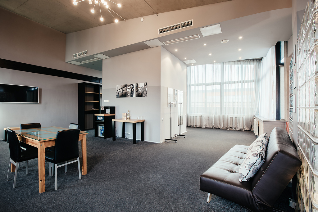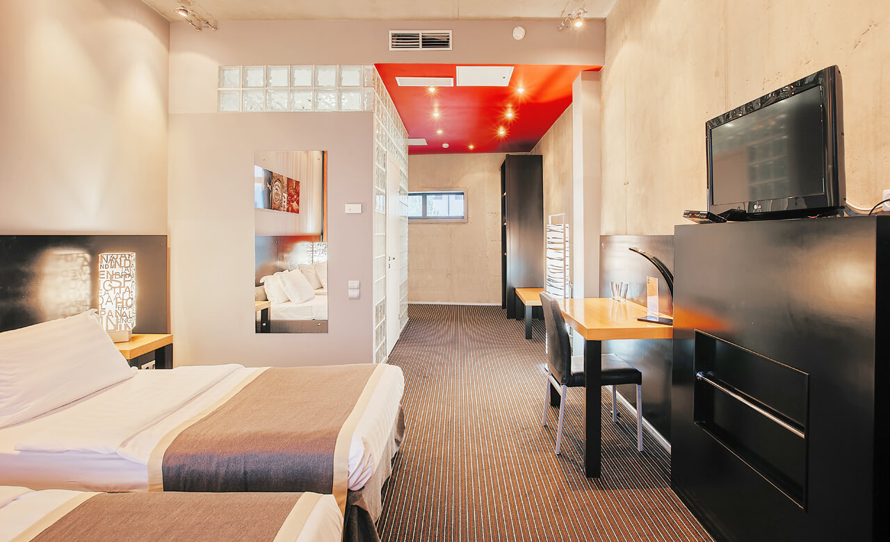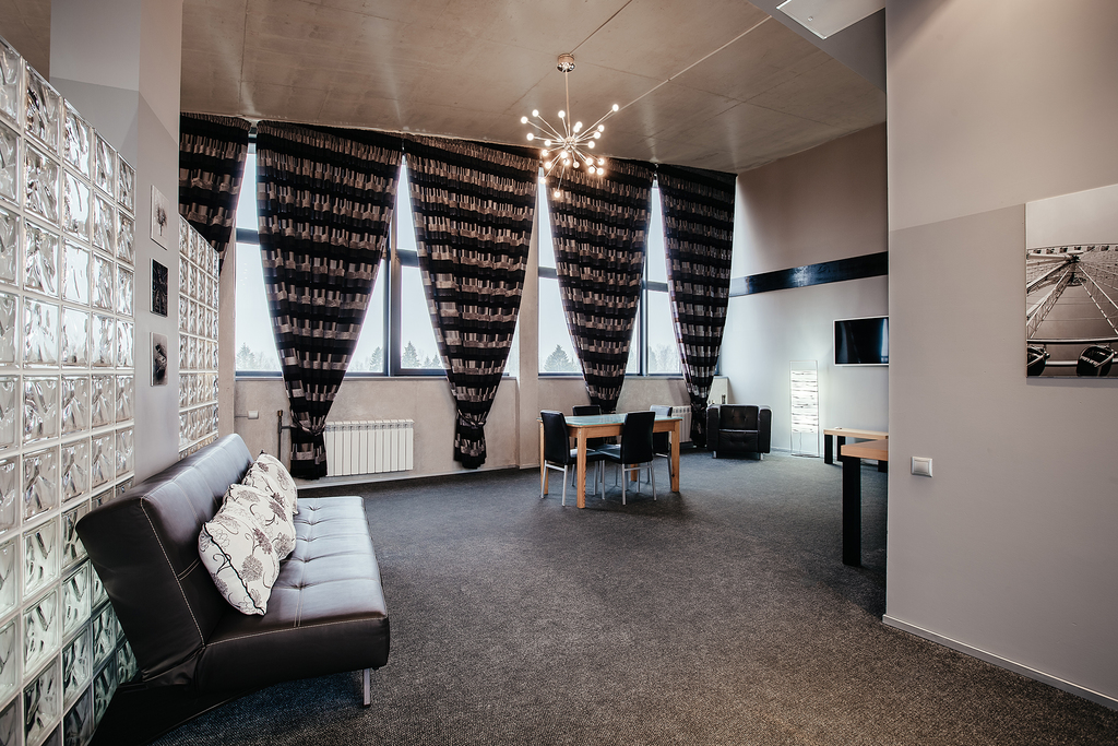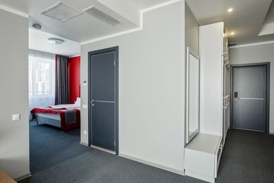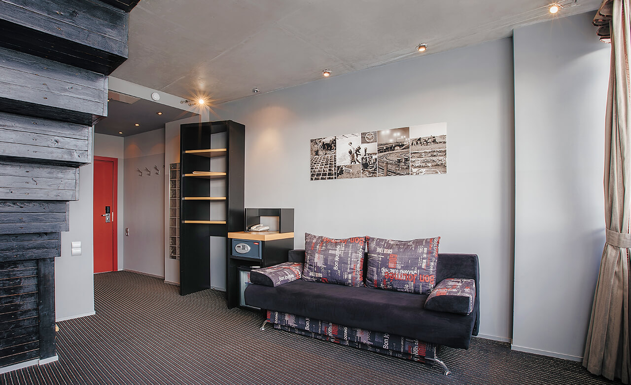 Номер площадью 24 квадратных метра, оформленный в стиле хай-тек, рассчитан максимум на 4 человек.