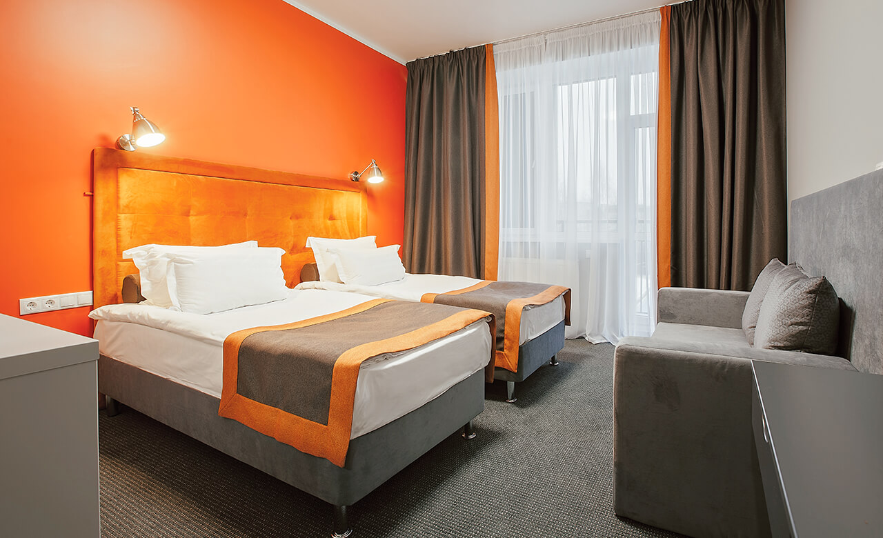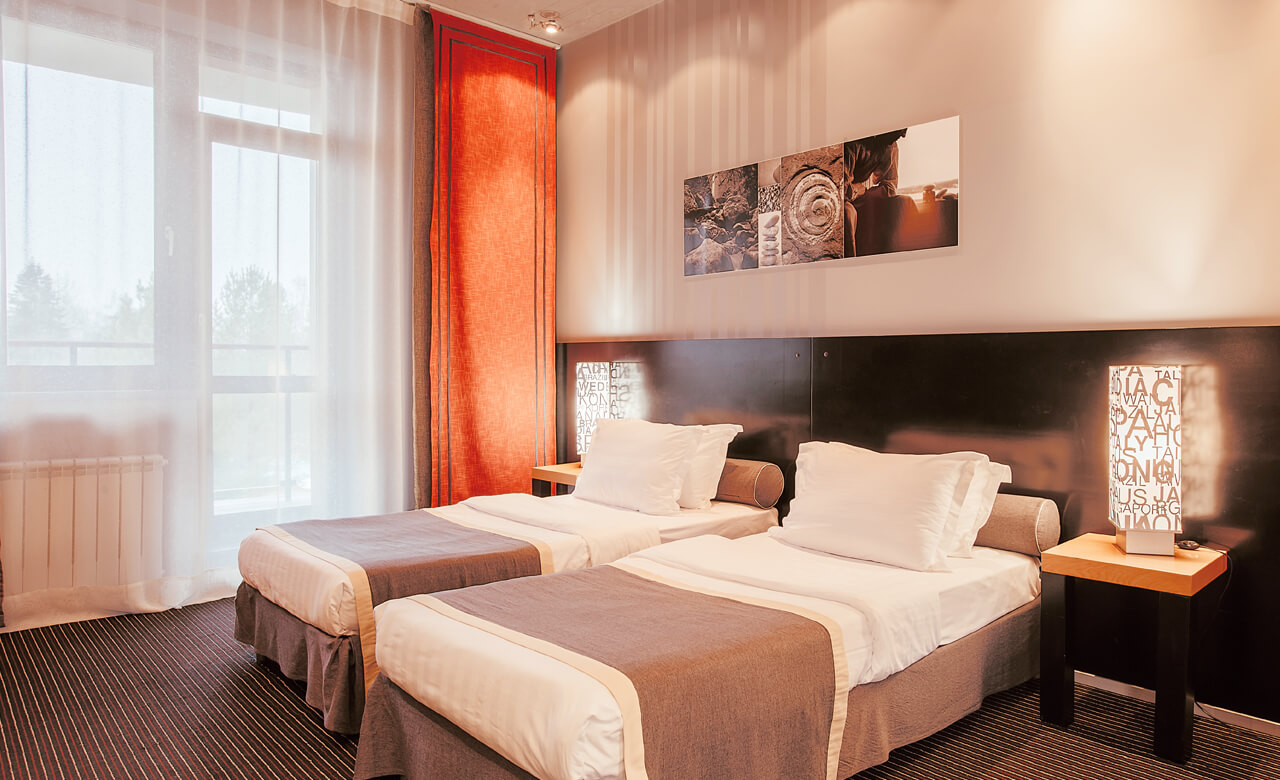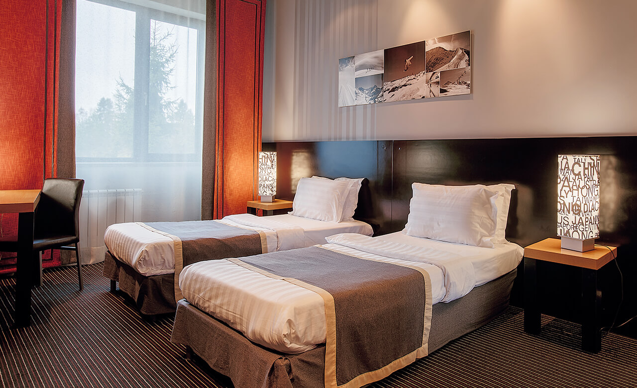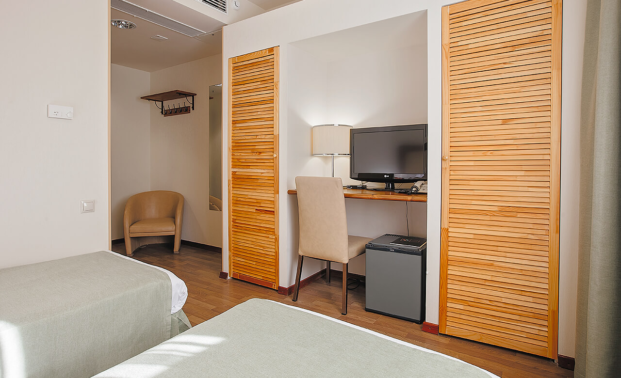 В номере находятся телевизор, сейф, кондиционер, зеркало, стол со стульями, тумбы, светильники, две односпальные кровати, которые при необходимости можно сдвинуть, удобные подушки и одеяла, а также свежее постельное белье. На территории отеля ловит бесплатная Wi-Fi сеть. За отдельную плату можно воспользоваться услугами мини-бара.