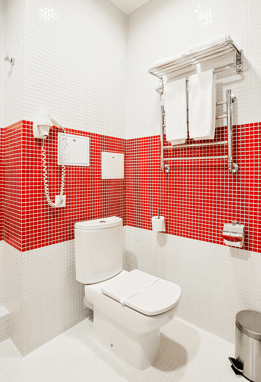 Также такие номера оборудованы санузлом и ванной.