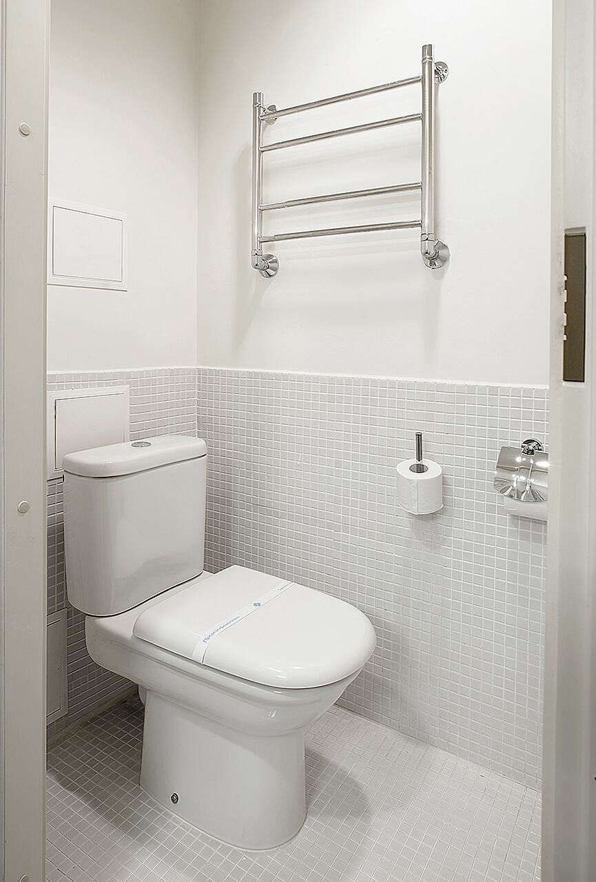 Санузел оборудован душ-кабиной. Приятно порадует наличие ванны в зоне спальни.