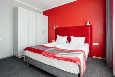3 номера такого типа состоят из прихожей и двух спален, стильно оформлены и оснащены хорошим набором мебели и бытовой техникой.