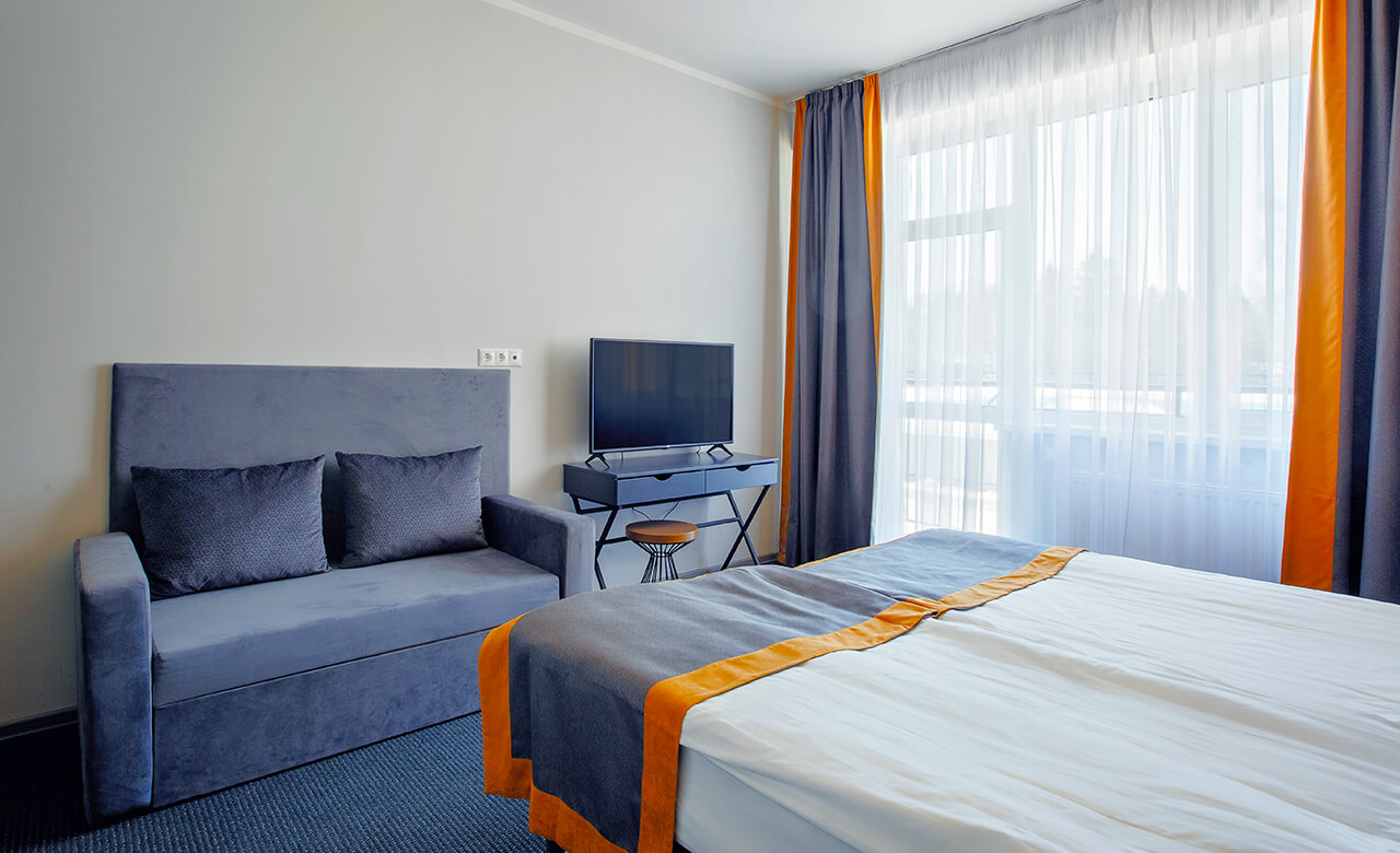 Яркий, комфортабельный, современный 1-комнатный номер в новом корпусе отеля FRESH создан специально для любителей брать от отдыха все, проводить время в компании семьи и друзей с комфортом и не беспокоиться ни о чем – ведь все уже продумано для того, чтобы сделать отдых незабываемым.