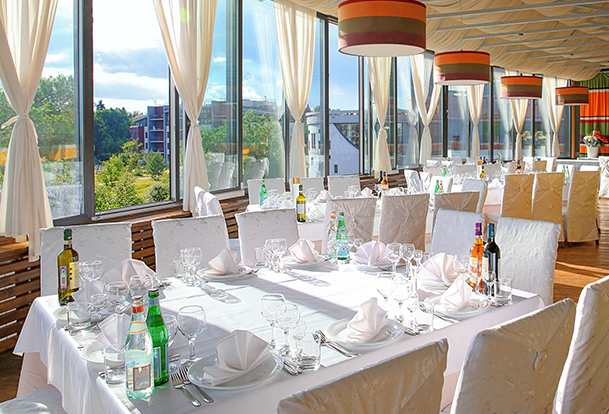 К этим помещением относится зал «Лесной», конференц-зал и кинозал. Спортивный зал отеля уникален тем, что при необходимости тоже может использоваться в качестве конференц-зала. Во всех залах, кроме кинозала возможны различные варианты расстановки мебели и рассадки участников.
