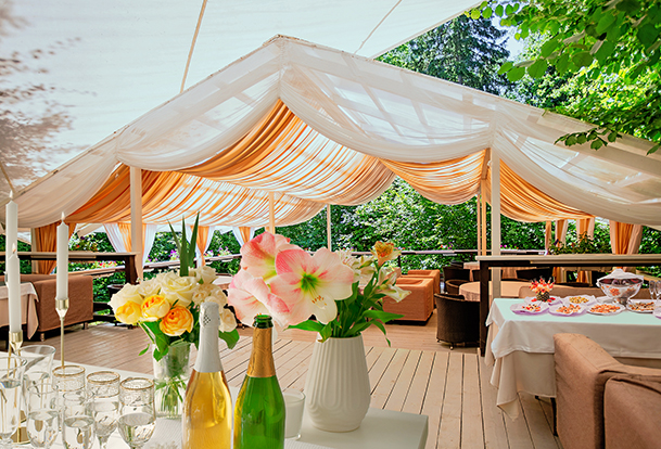 Выбрав любое помещение, в зависимости от числа участников, каждый из них останется доволен дизайном и созданной атмосферой. А в теплое время года большой популярностью пользуется летняя площадка «Рыбацкая» с восхитительным видом на природу и отличная летняя веранда.