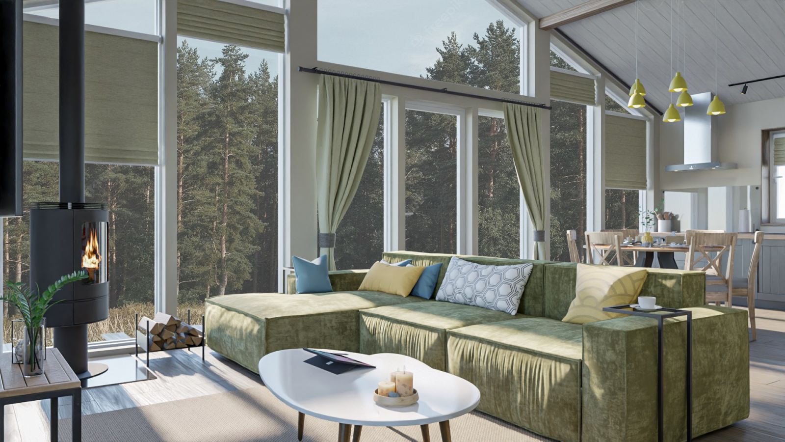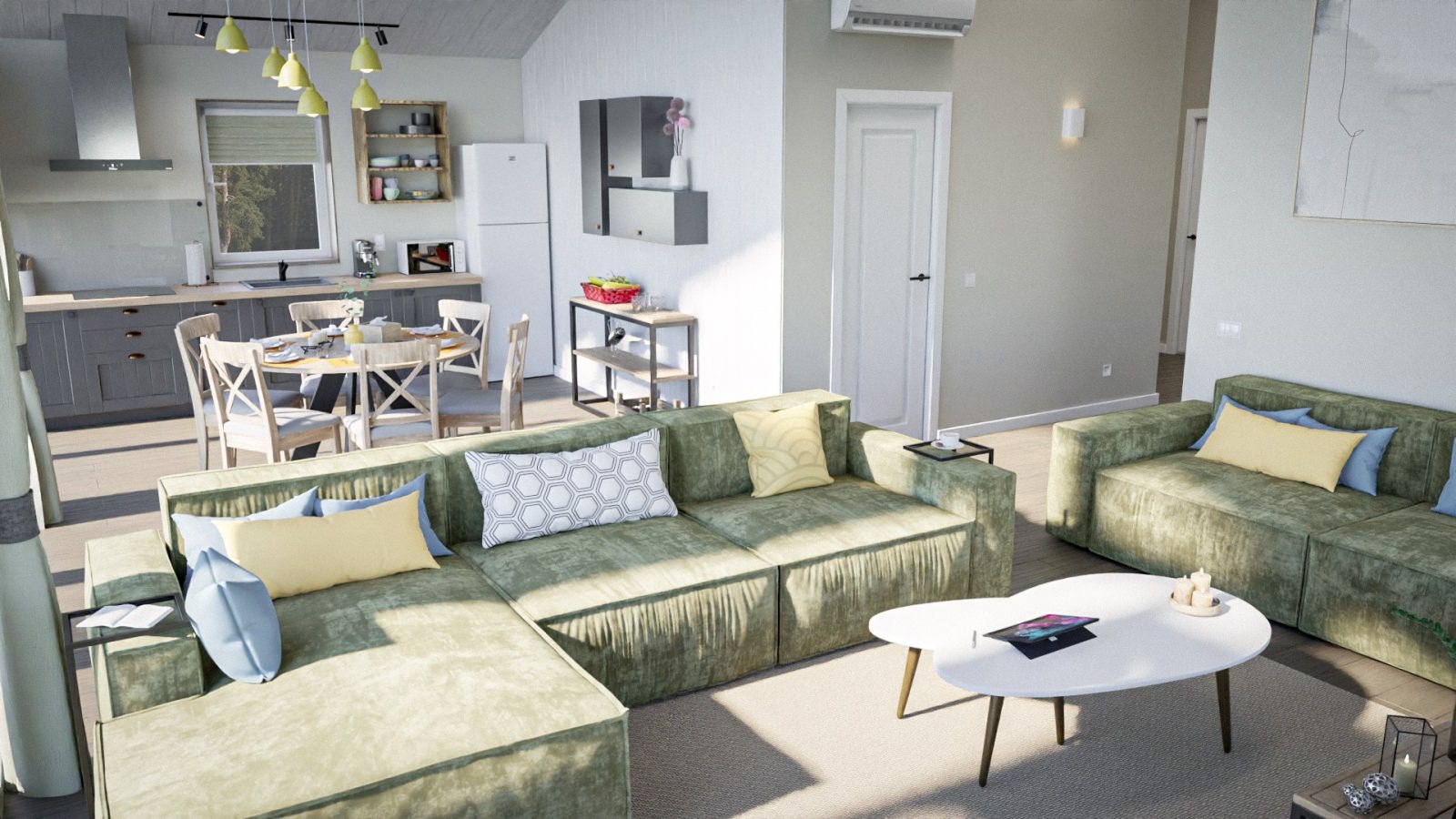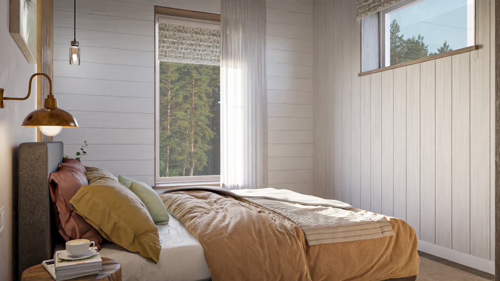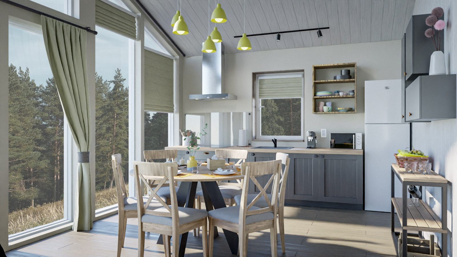 Комфортный дом располагает думя спальнями, гостиной с оборудованной кухней и одной ванной комнатой с душем, террасой. В гостиной – функциональная мини-кухня, обеденная зона, зона отдыха с диваном и камином. По запросу предоставляем детскую кроватку, ванночку и детский стульчик для кормления. Для запоминающихся вечеров под открытым небом обустроена гриль-беседка с костровой зоной.