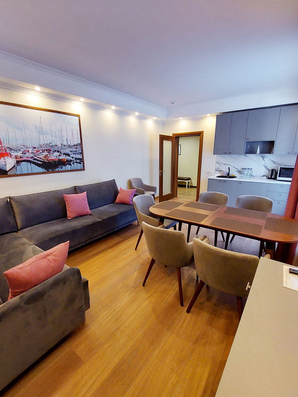 Такие номера являются самыми просторными, имеют площадь 60 кв. метров и включают в себя две комфортабельных спальни и гостиную-кухню. Номера способны вместить до 5 гостей, что отлично подходит для семейного отдыха или отдыха с компанией.