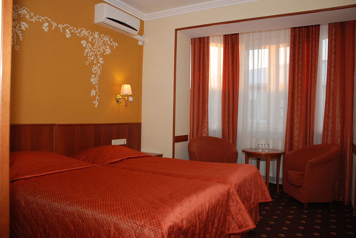Номера рассчитаны на проживание двух гостей в условиях повышенного уровня комфорта. В оснащении таких номеров есть вся необходимая бытовая техника и удобная мебель.