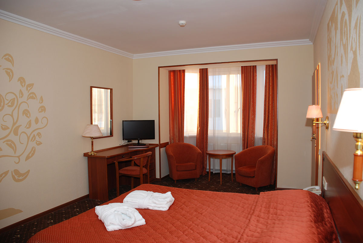 Номера рассчитаны на проживание двух гостей в условиях повышенного уровня комфорта. В оснащении таких номеров есть вся необходимая бытовая техника и удобная мебель.